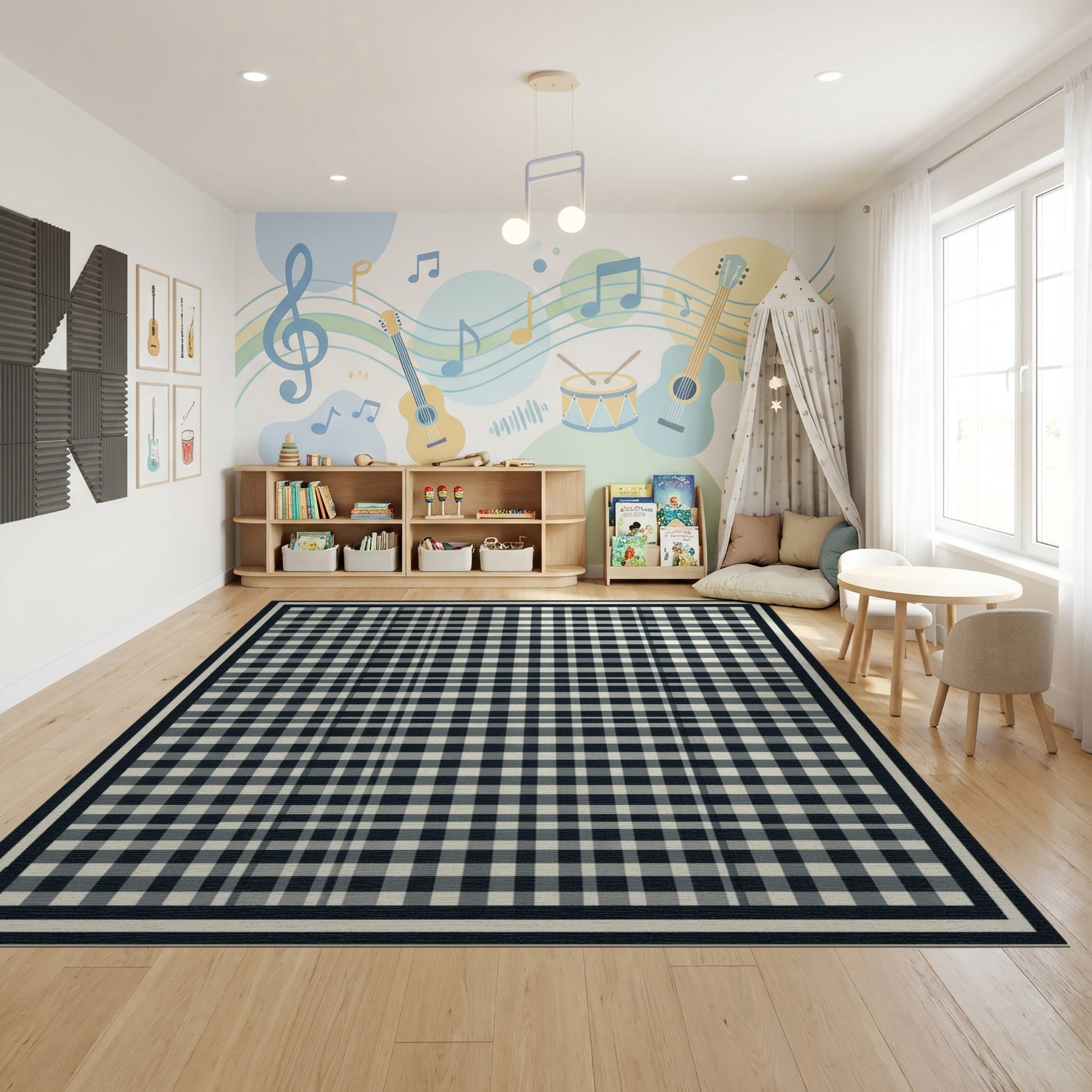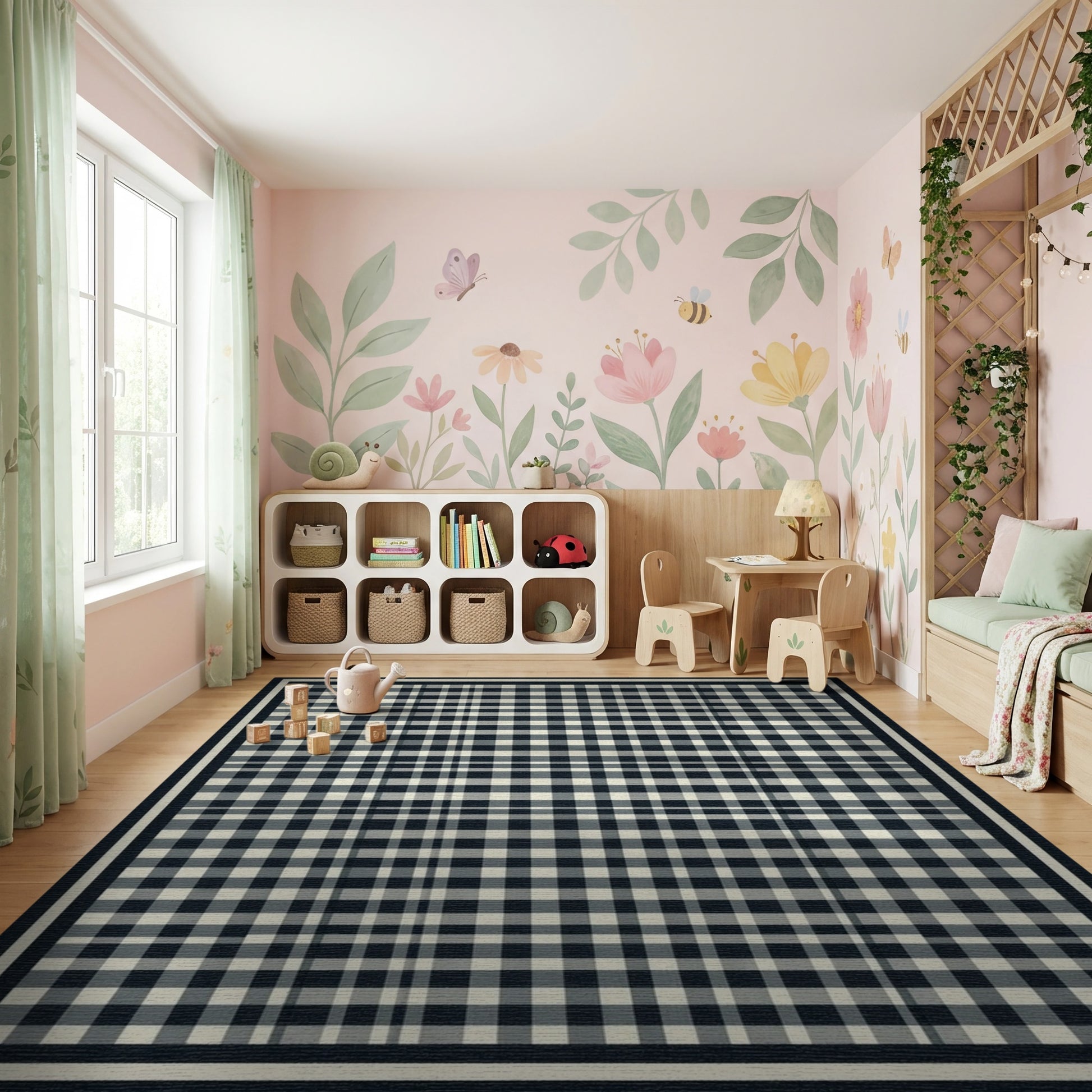 Flatwoven High Traffic Area Rug, Black White Checkered Gingham Rug, Non Slip, Stain Resistant, Washable Area Rugs for Study Room, Playroom, Bedroom Overview: