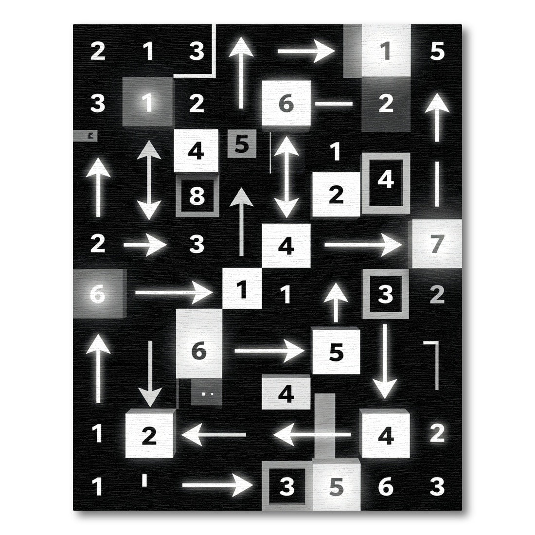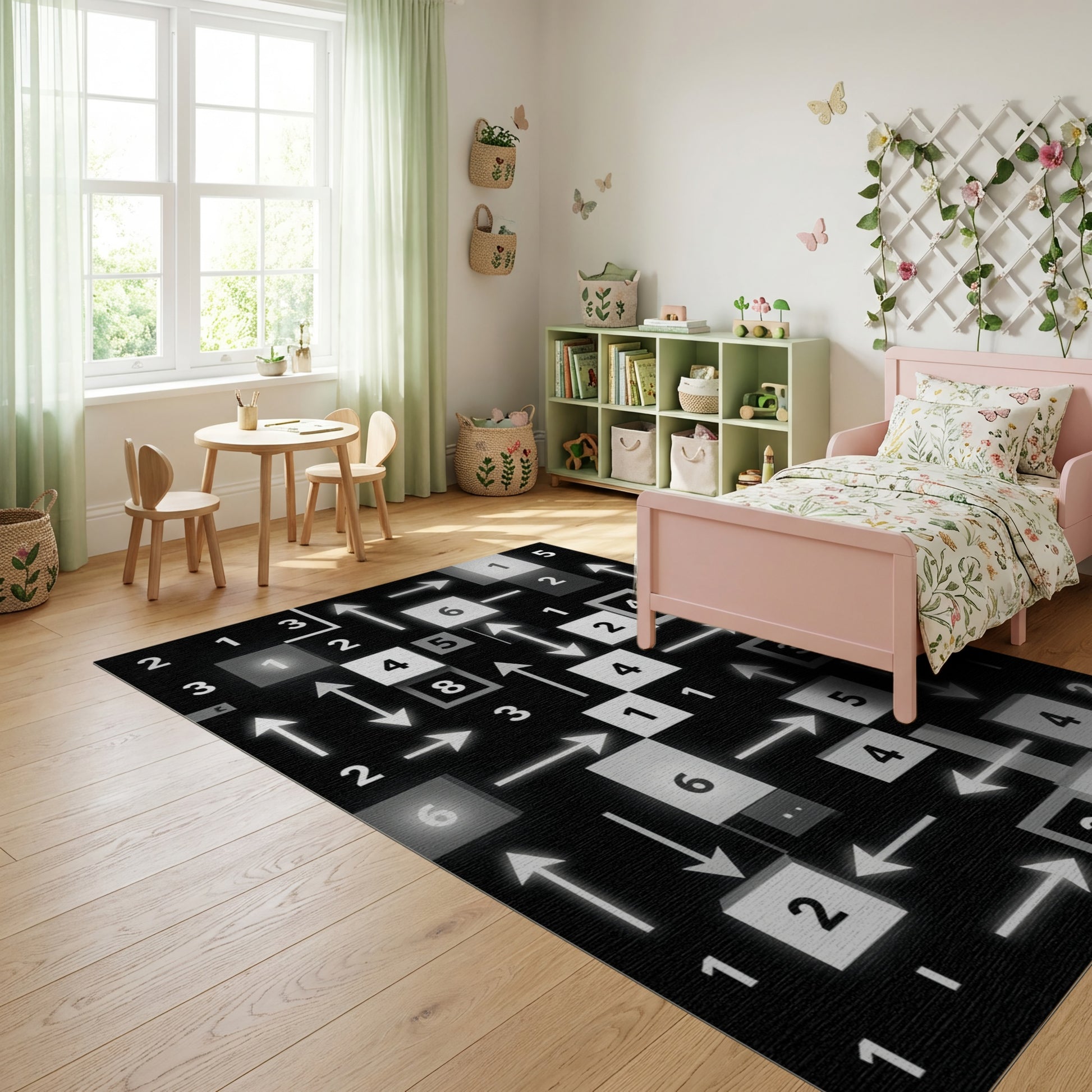 Flatwoven High Traffic Area Rug, Black White Number Arrow Maze Rug, Non Slip, Stain Resistant, Washable Area Rugs for Study Room, Playroom, Bedroom Overview: