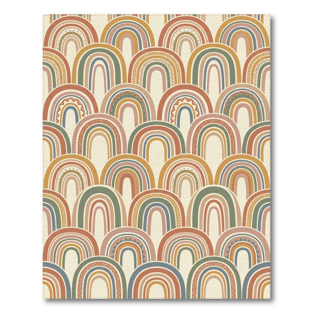 Flatwoven High Traffic Area Rug, Boho Overlapping Multicolor Arches Rug, Non Slip, Stain Resistant, Washable Area Rugs for Study Room, Playroom, Bedroom Overview: