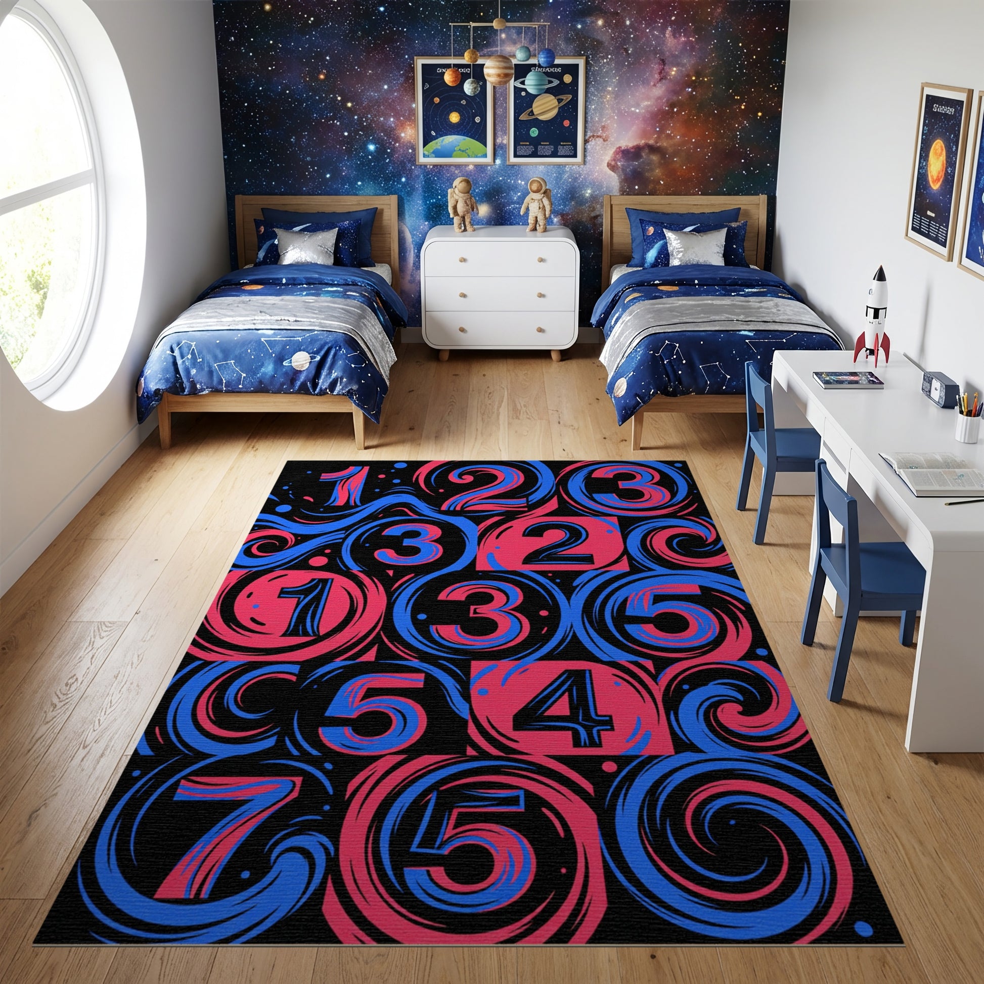 Bold Pink Blue Swirling Numbers Rug