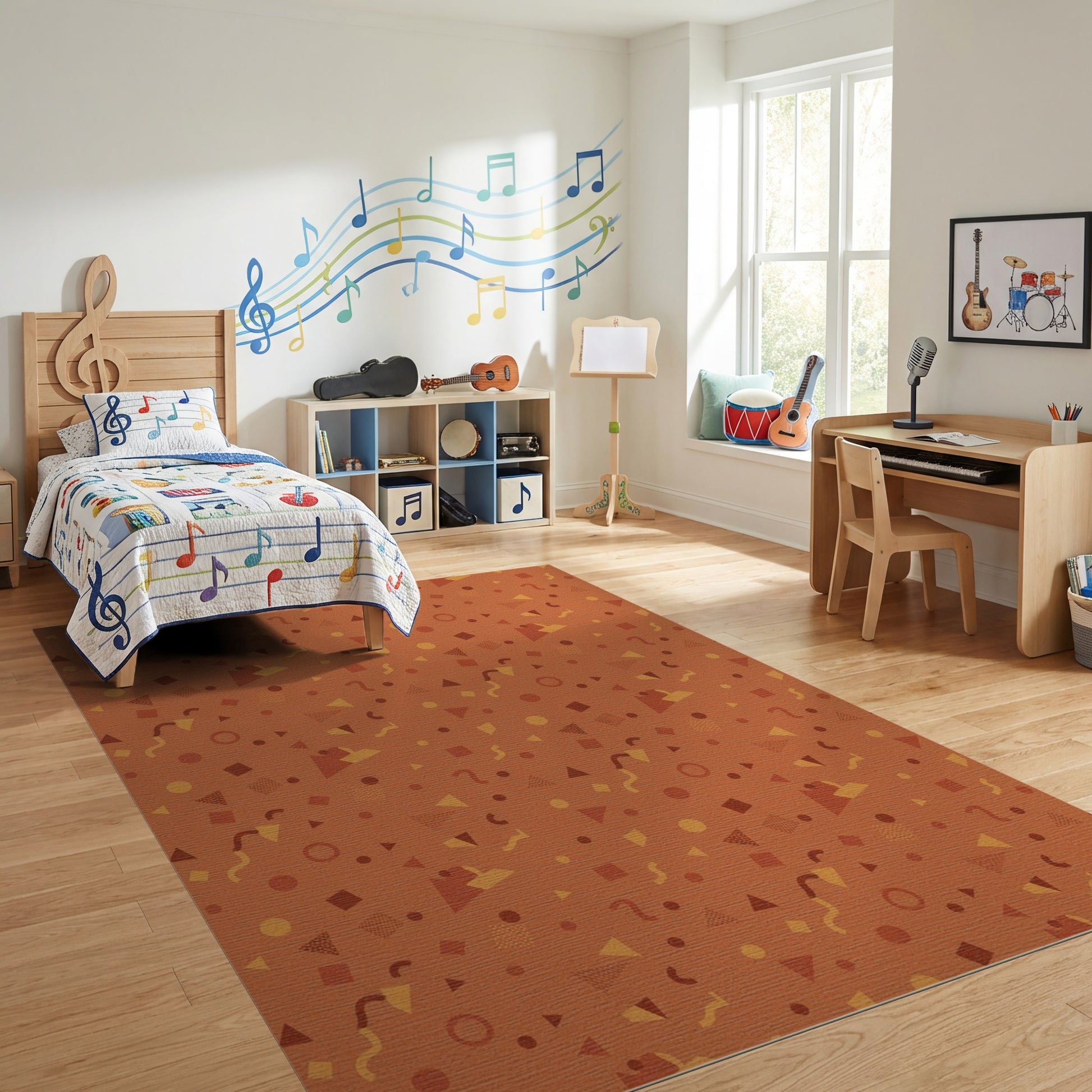 Flatwoven High Traffic Area Rug, Burnt Orange Abstract Geometric Shapes Rug, Non Slip, Stain Resistant, Washable Area Rugs for Study Room, Playroom, Bedroom Overview: