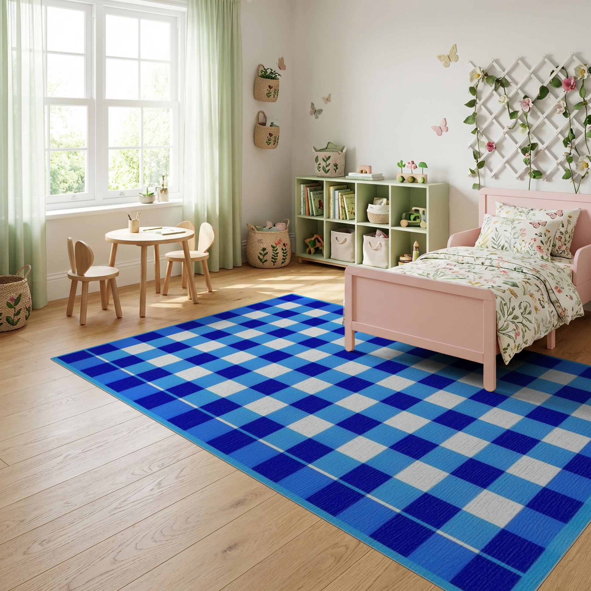 Flatwoven High Traffic Area Rug, Classic Blue White Checkered Rug, Non Slip, Stain Resistant, Washable Area Rugs for Study Room, Playroom, Bedroom Overview: