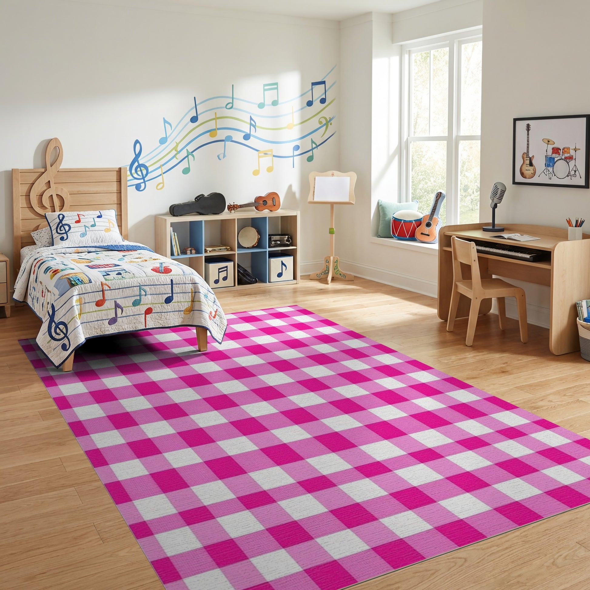 Classic Pink White Gingham Rug