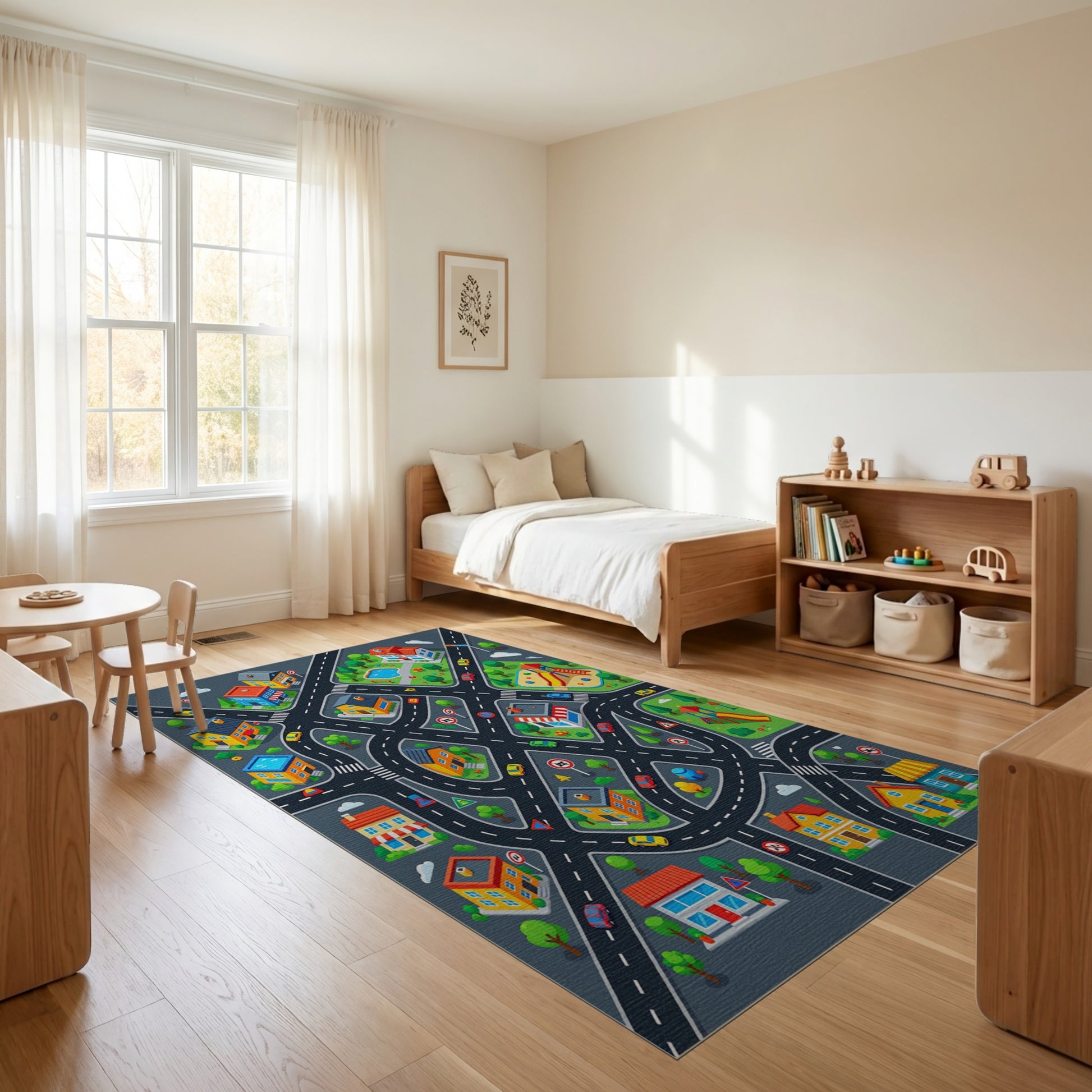 Flatwoven High Traffic Area Rug, Colorful City Streets Playground Rug, Non Slip, Stain Resistant, Washable Area Rugs for Study Room, Playroom, Bedroom Overview: