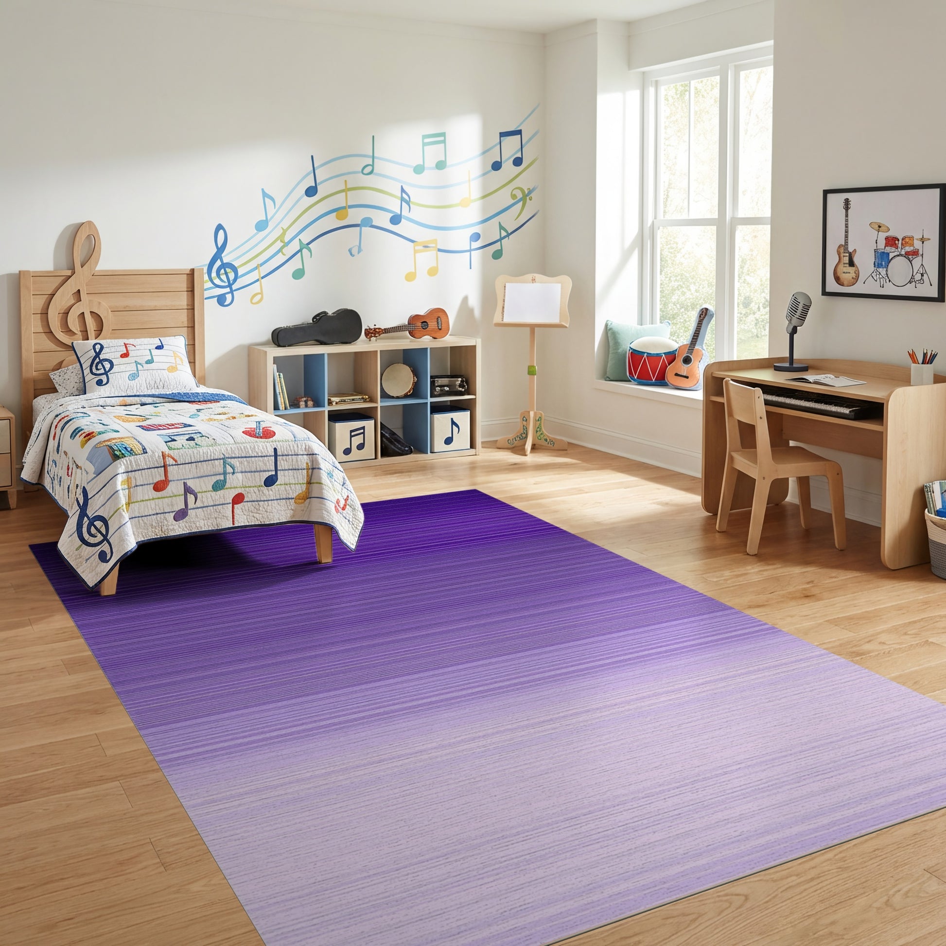 Flatwoven High Traffic Area Rug, Deep Purple Lavender Ombre Striped Rug, Non Slip, Stain Resistant, Washable Area Rugs for Study Room, Playroom, Bedroom Overview: