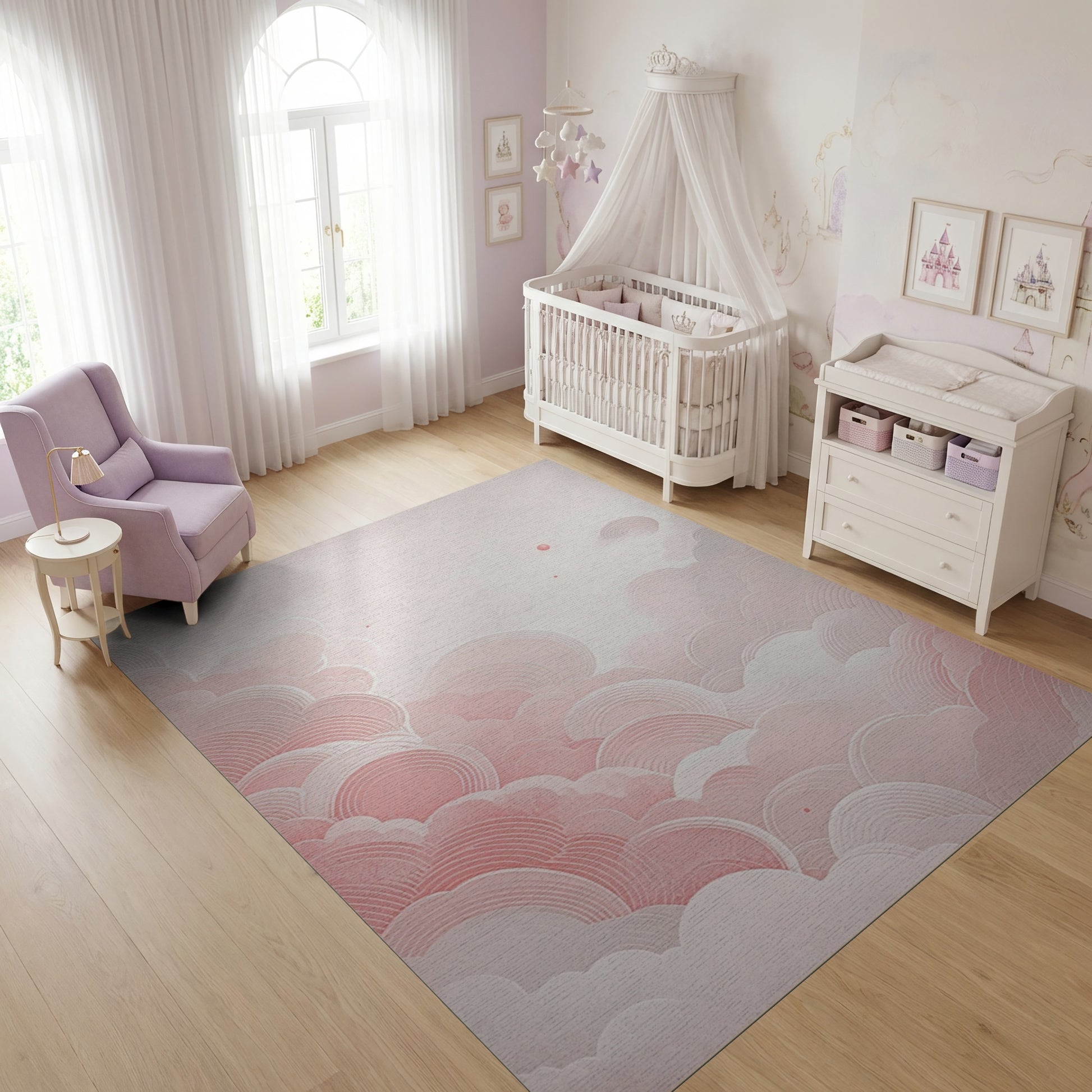 Flatwoven High Traffic Area Rug, Dreamy Blush Gray Clouds Rug, Non Slip, Stain Resistant, Washable Area Rugs for Study Room, Playroom, Bedroom Overview: