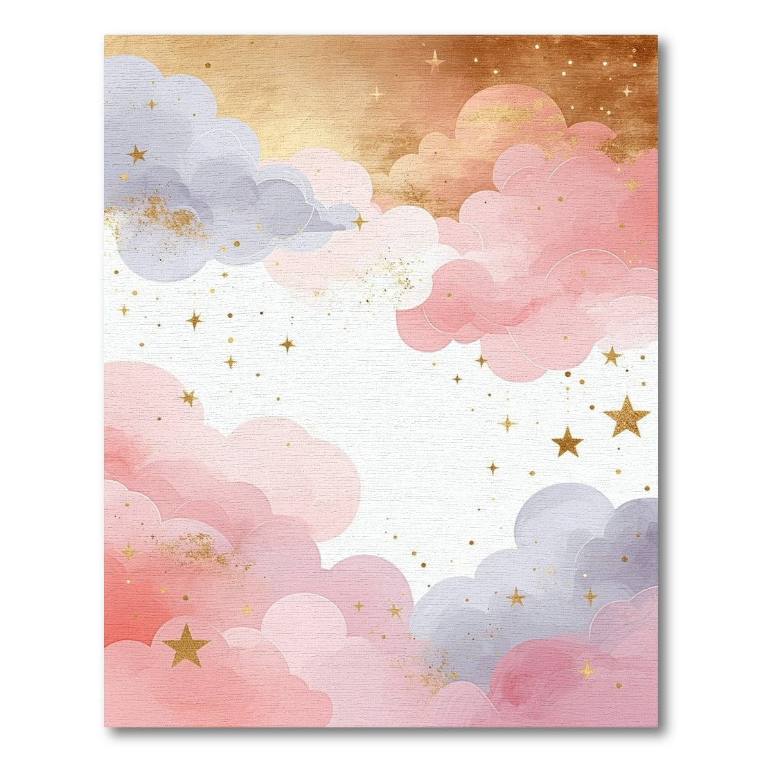 Flatwoven High Traffic Area Rug, Dreamy Pastel Clouds Gold Stars Rug, Non Slip, Stain Resistant, Washable Area Rugs for Study Room, Playroom, Bedroom Overview: