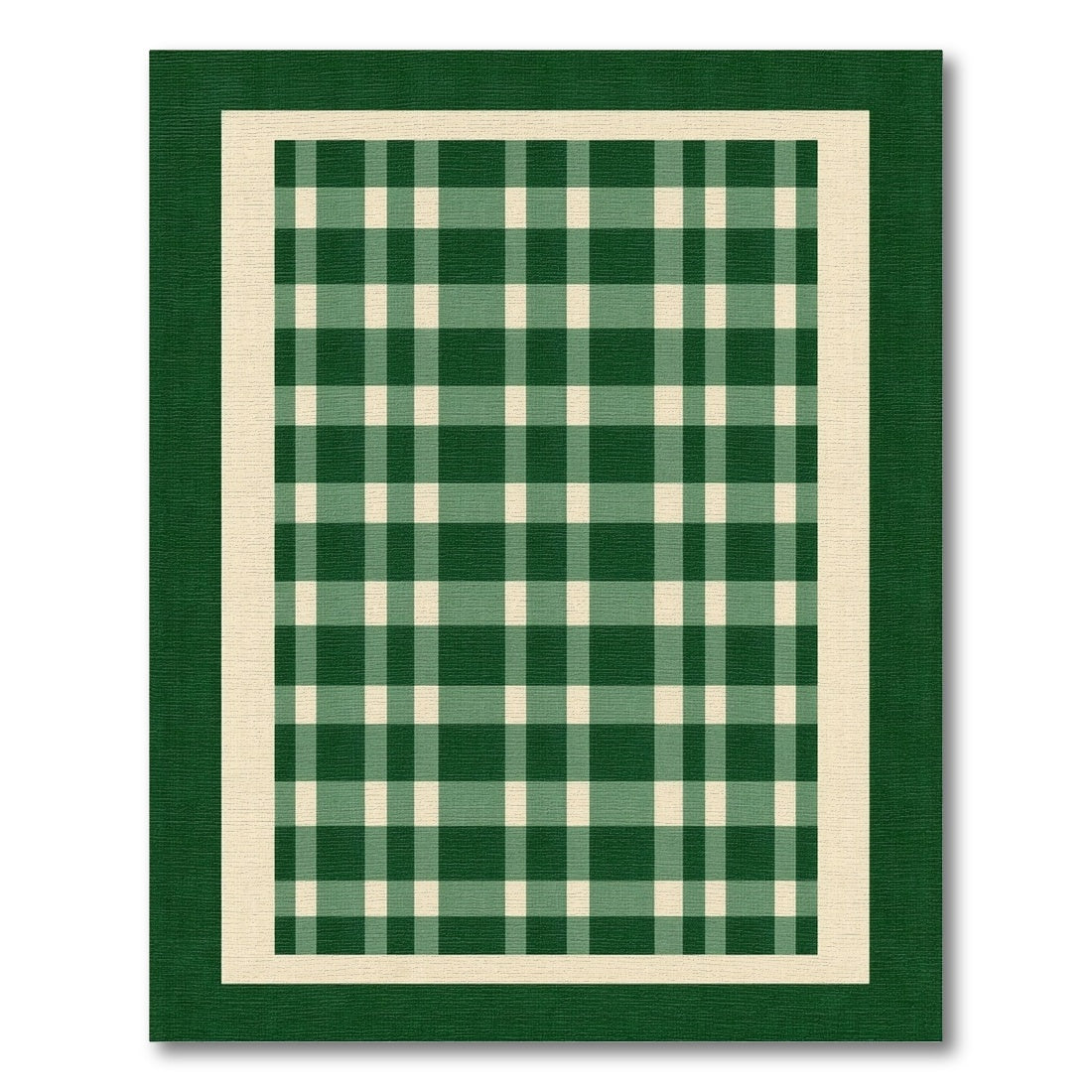 Green and White Checkered Border Rug
