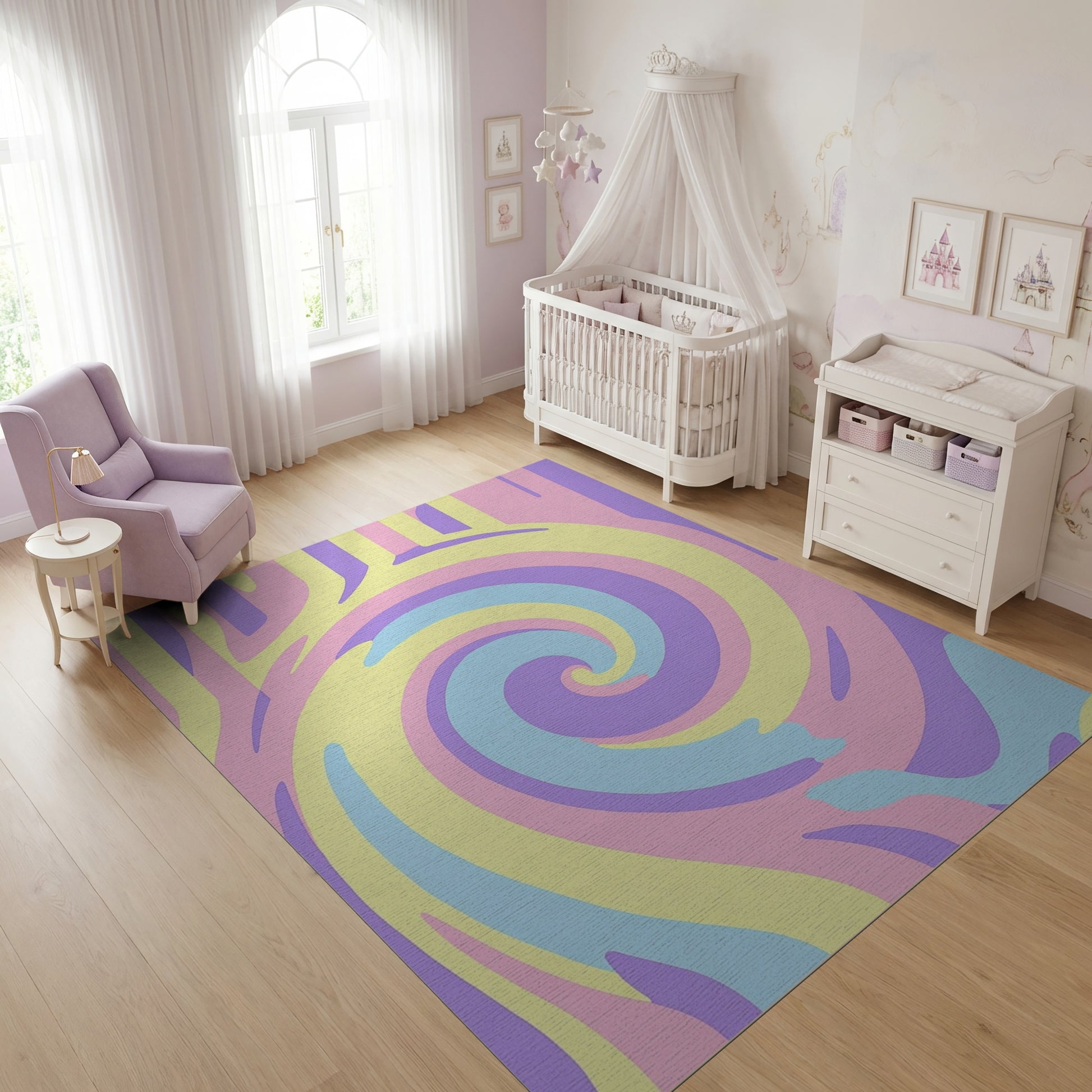 Flatwoven High Traffic Area Rug, Hypnotic Pastel Swirling Spiral Rug, Non Slip, Stain Resistant, Washable Area Rugs for Study Room, Playroom, Bedroom Overview: