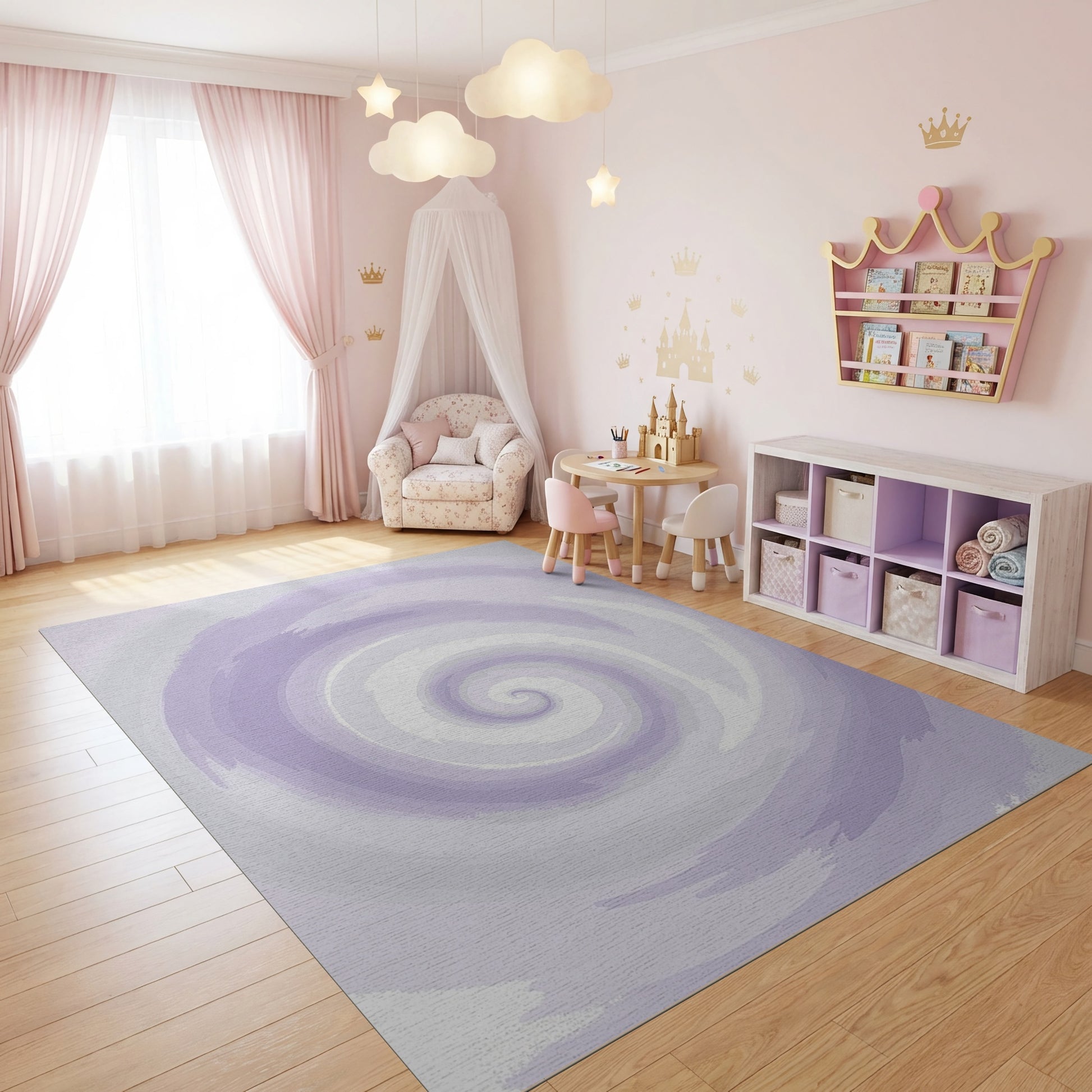 Flatwoven High Traffic Area Rug, Hypnotic Purple Spiral Gradient Rug, Non Slip, Stain Resistant, Washable Area Rugs for Study Room, Playroom, Bedroom Overview:
