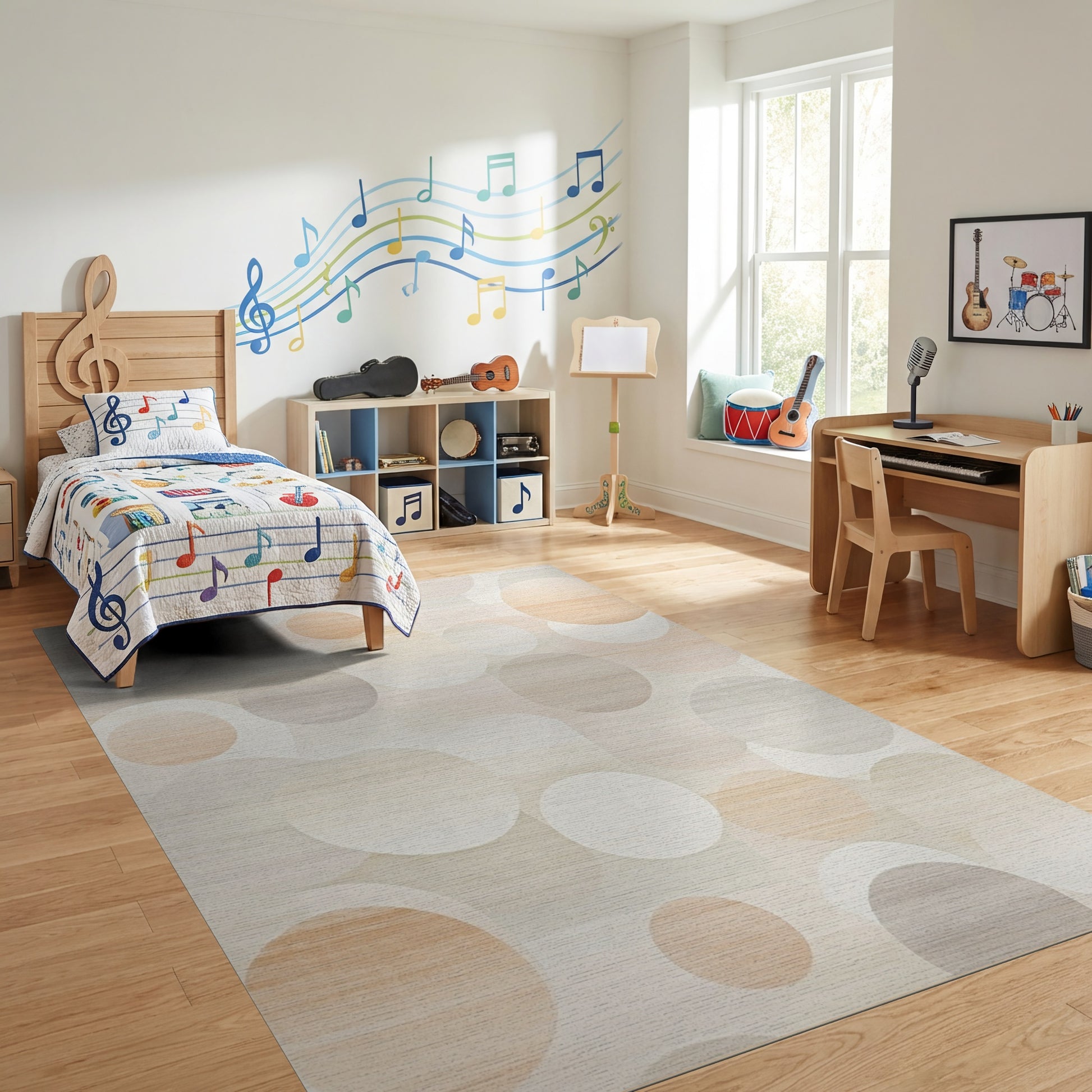 Flatwoven High Traffic Area Rug, Modern Beige Gray Overlapping Circles Rug, Non Slip, Stain Resistant, Washable Area Rugs for Study Room, Playroom, Bedroom Overview: