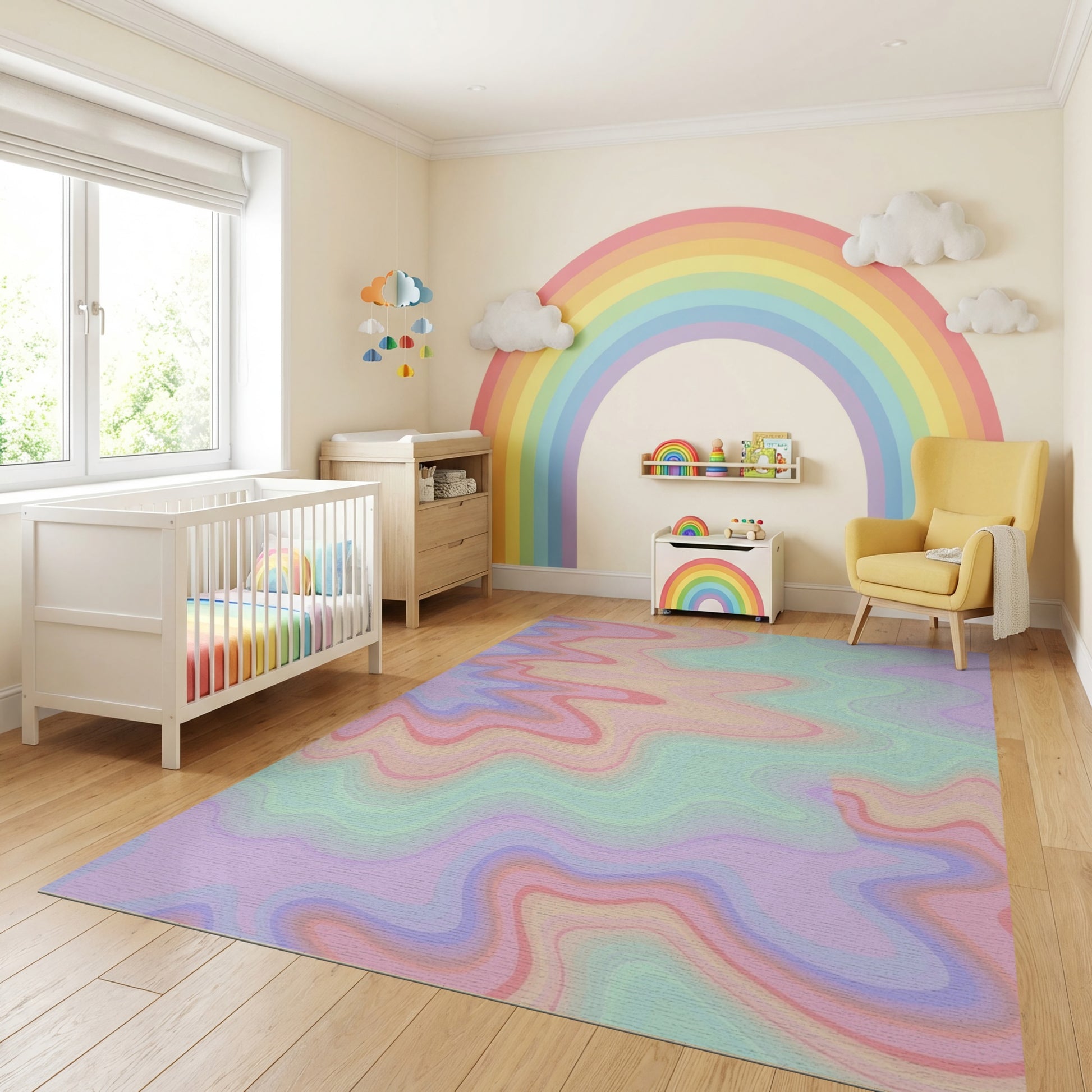 Pastel Wavy Fluid Gradient Rug