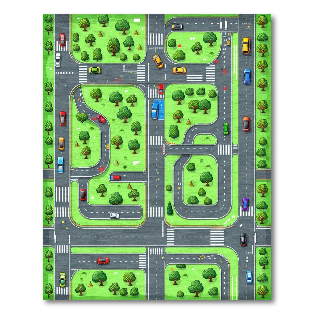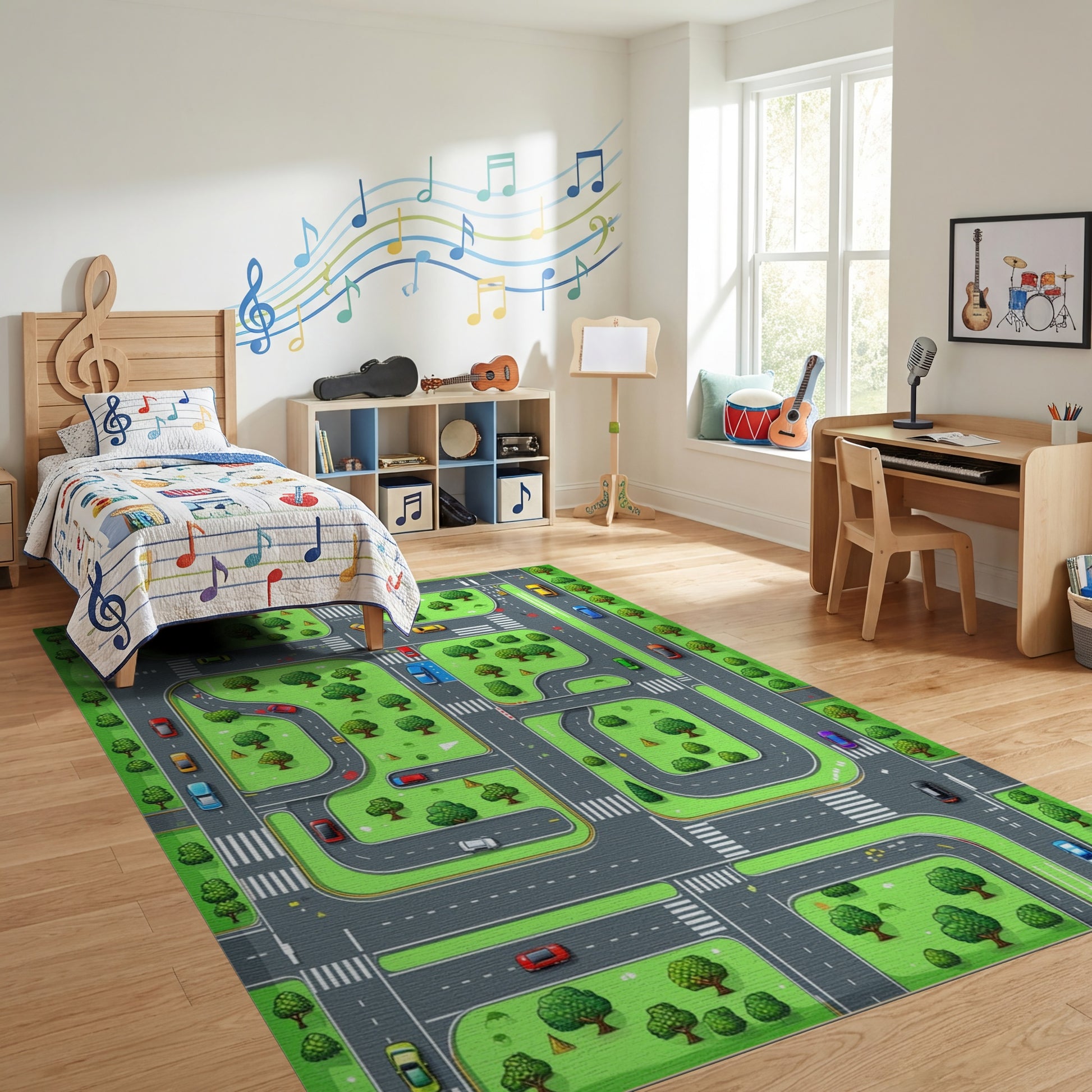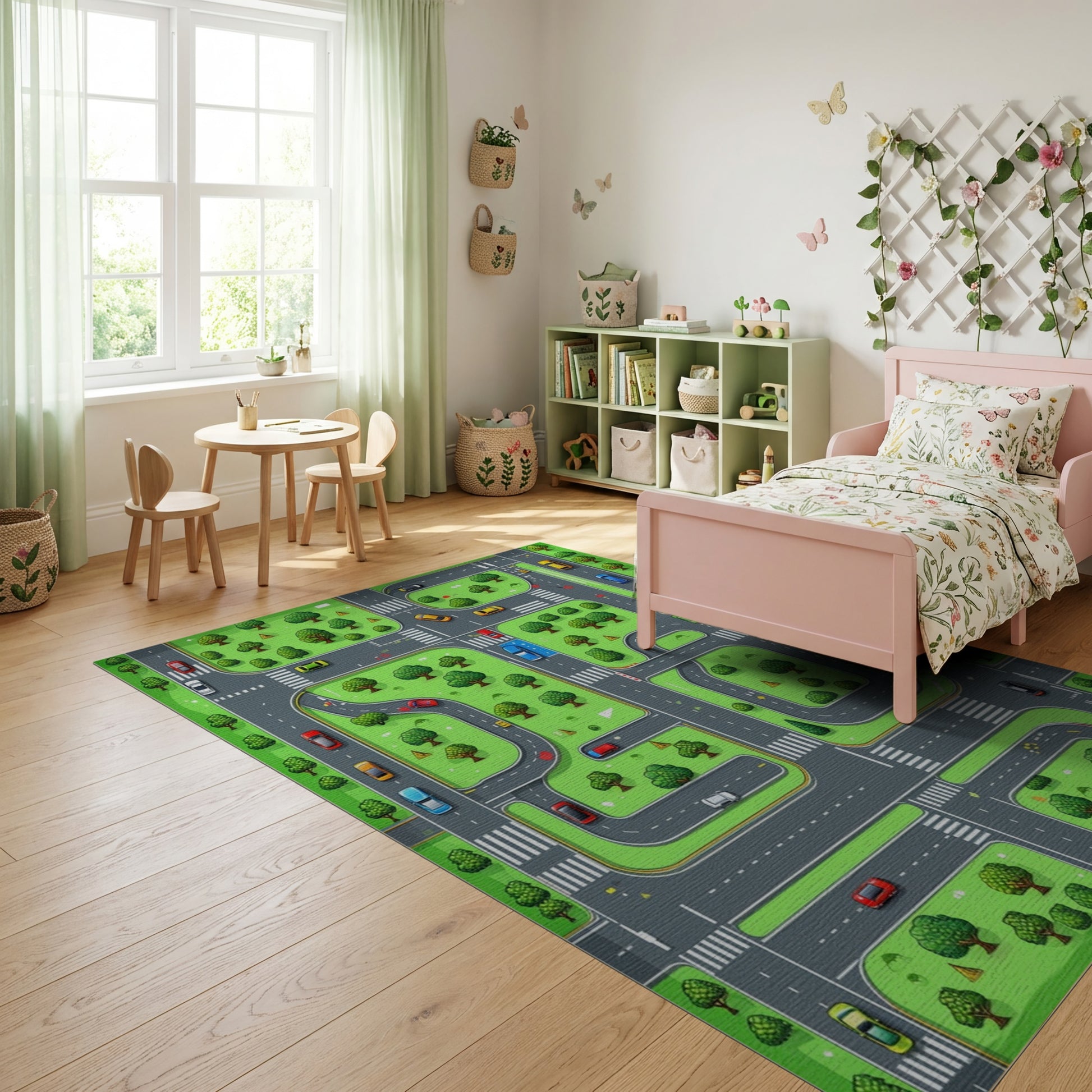 Flatwoven High Traffic Area Rug, Playful City Road Map Rug, Non Slip, Stain Resistant, Washable Area Rugs for Study Room, Playroom, Bedroom Overview: