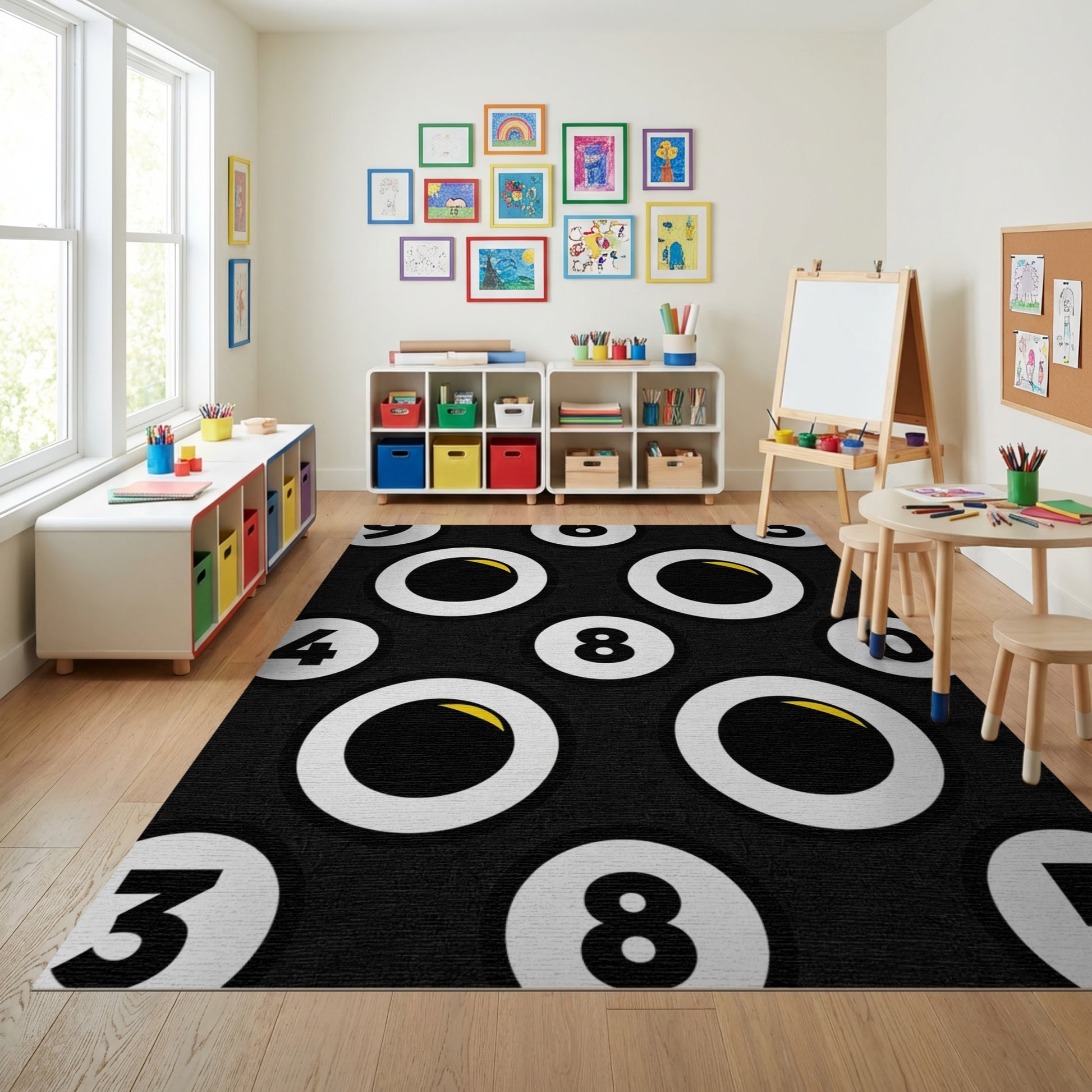 Flatwoven High Traffic Area Rug, Playful Googly Eyes Numeric Pattern Rug, Non Slip, Stain Resistant, Washable Area Rugs for Study Room, Playroom, Bedroom Overview: