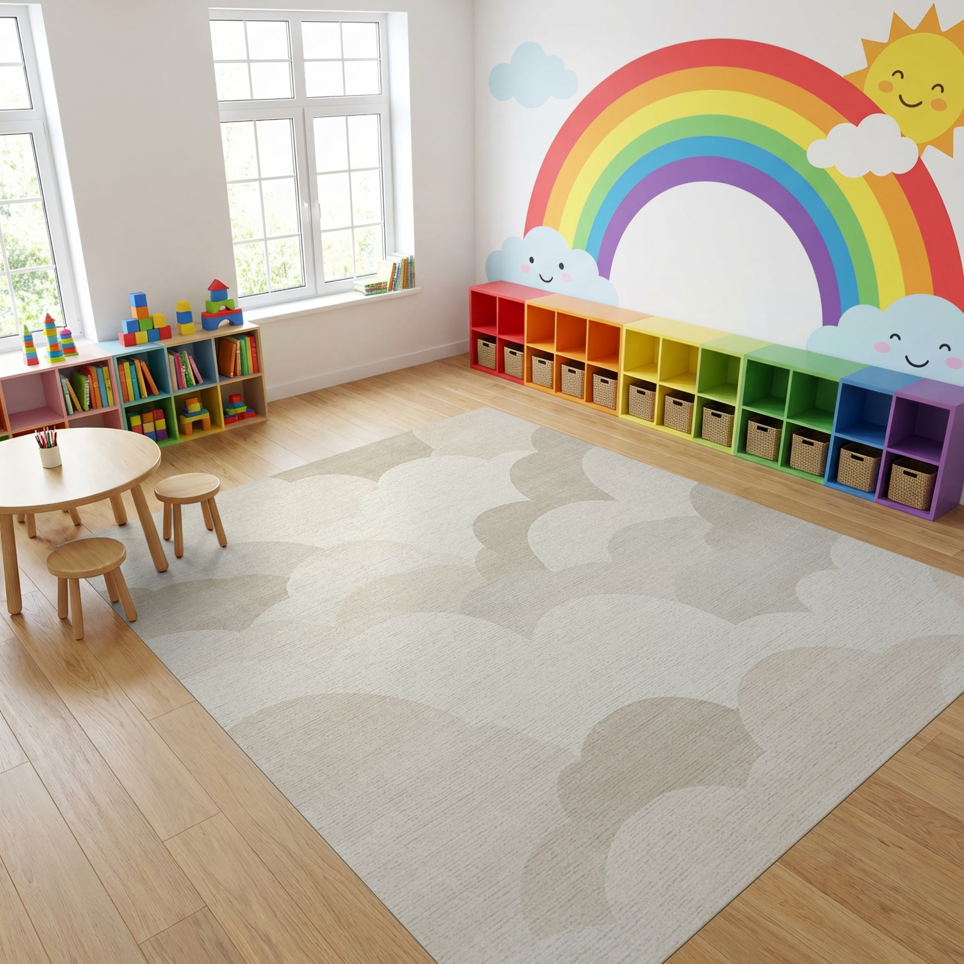 Flatwoven High Traffic Area Rug, Soft Layered Clouds Beige Tones Rug, Non Slip, Stain Resistant, Washable Area Rugs for Study Room, Playroom, Bedroom Overview: