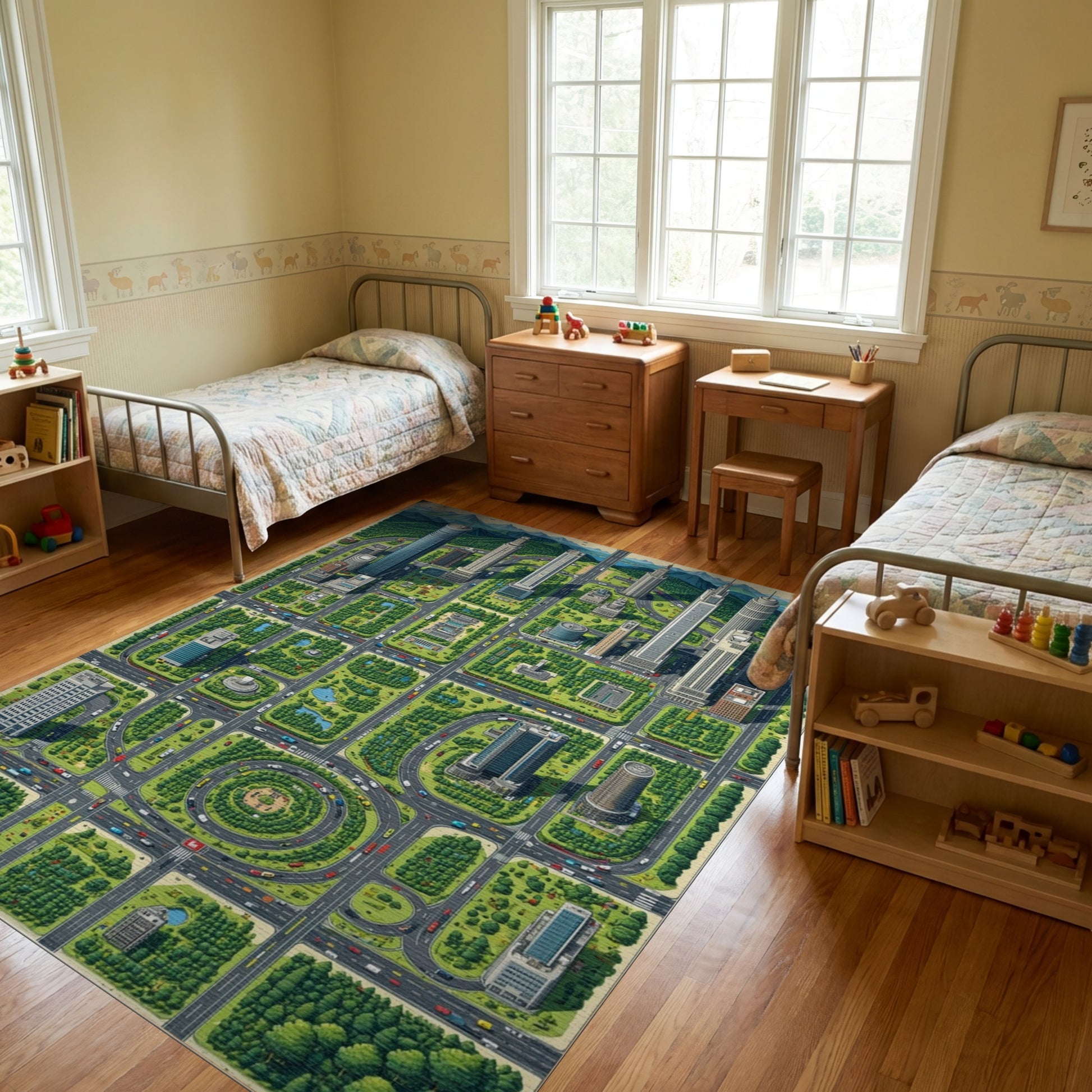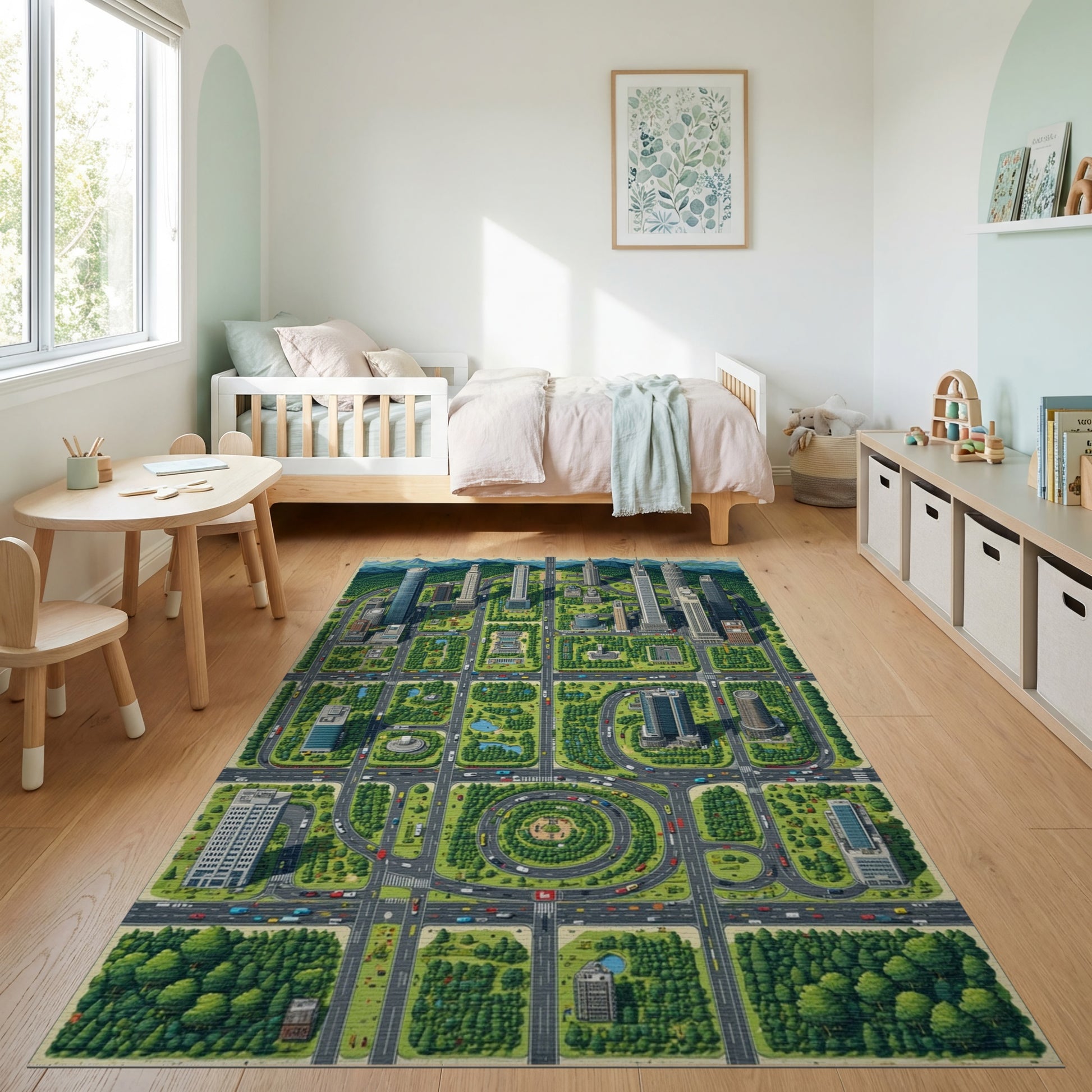 Flatwoven High Traffic Area Rug, Vibrant Aerial City Grid Rug, Non Slip, Stain Resistant, Washable Area Rugs for Study Room, Playroom, Bedroom Overview: