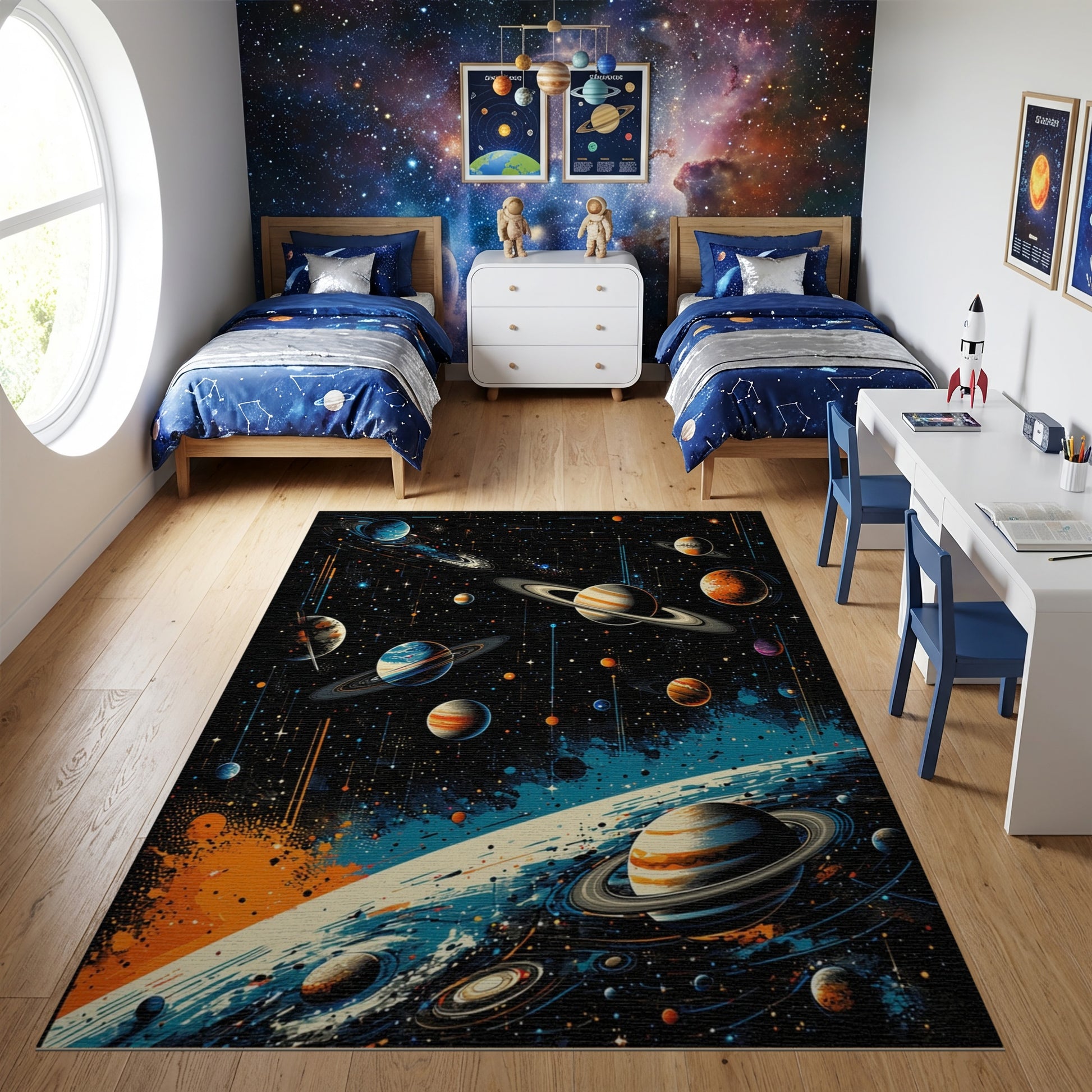 Vibrant Cosmic Ringed Planets Nebula Rug