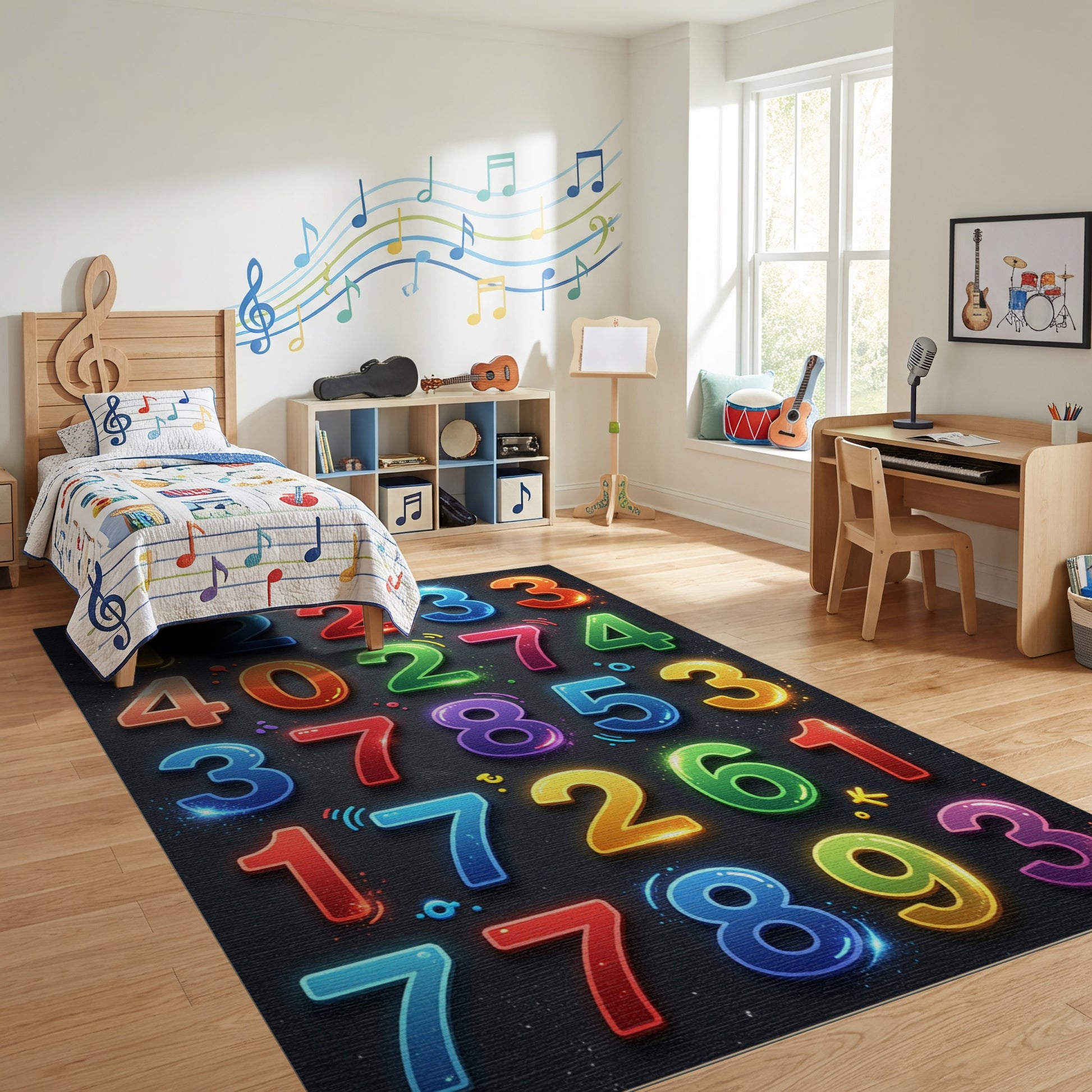 Flatwoven High Traffic Area Rug, Vibrant Glossy Multicolor Numbers Rug, Non Slip, Stain Resistant, Washable Area Rugs for Study Room, Playroom, Bedroom Overview:
