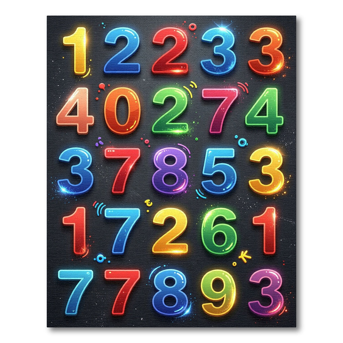 Vibrant Glossy Multicolor Numbers Rug