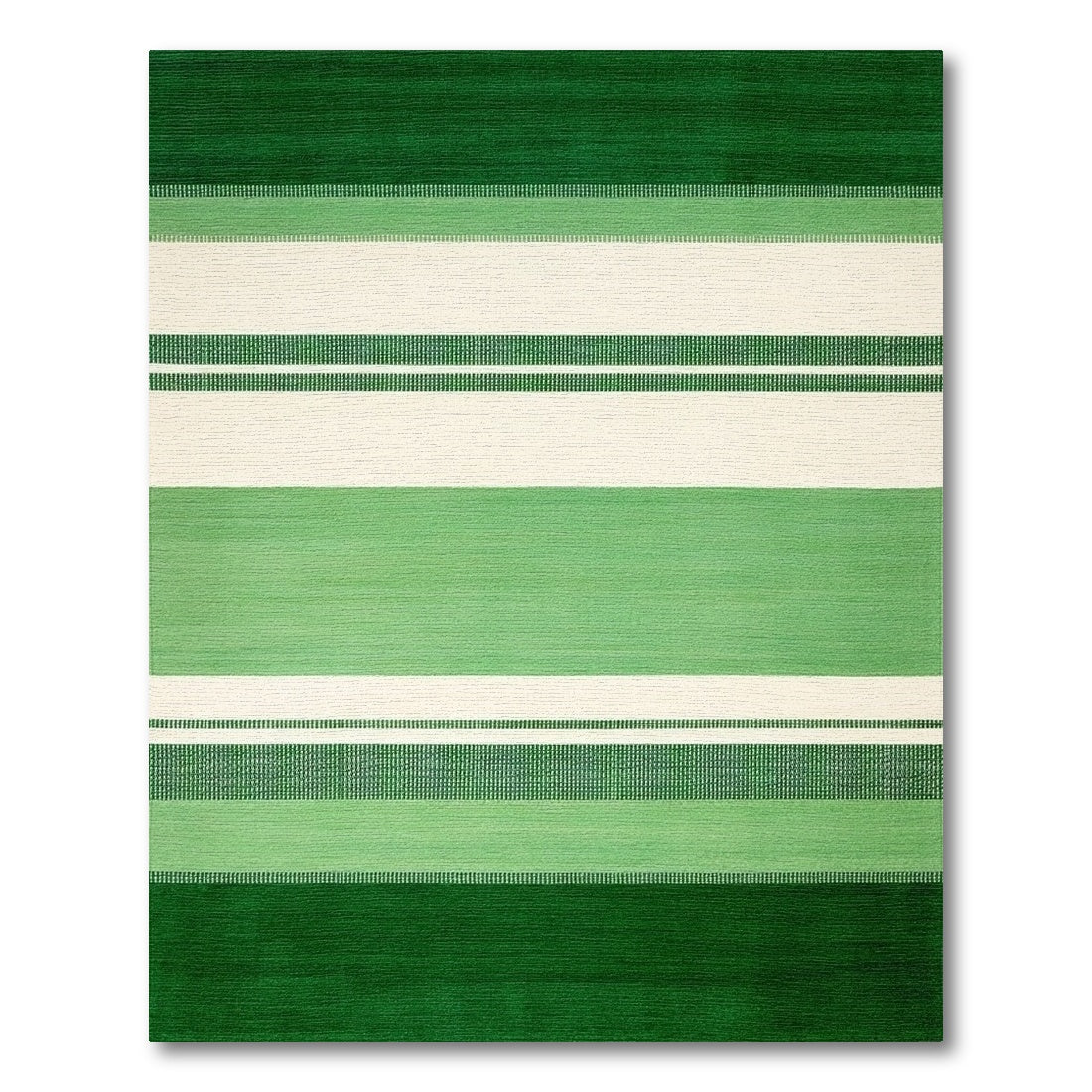 Vibrant Green and Cream Striped Rug