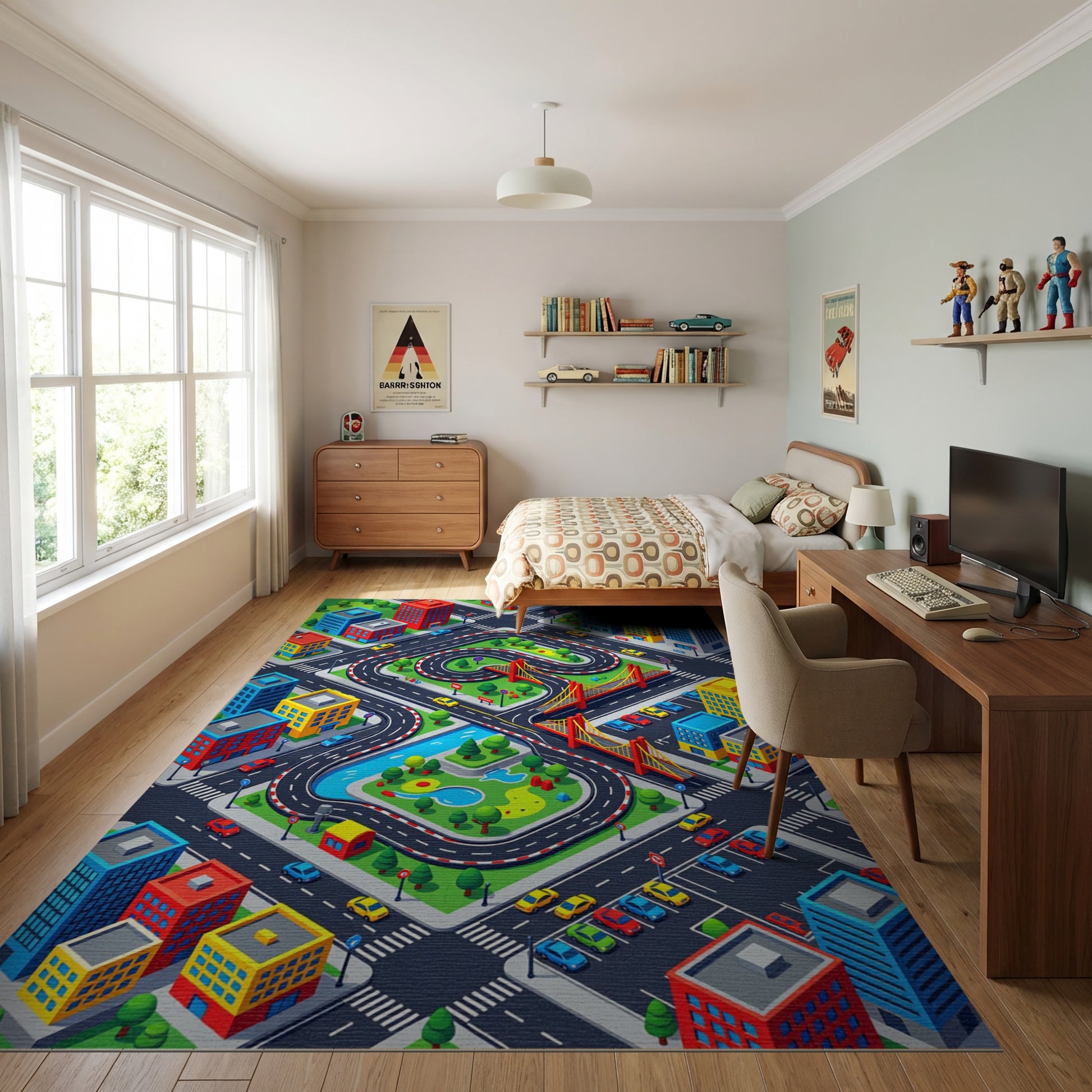 Vibrant Isometric City Race Track Rug