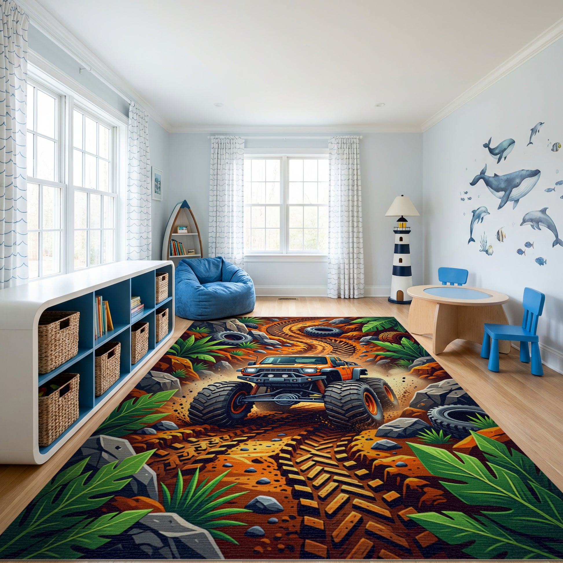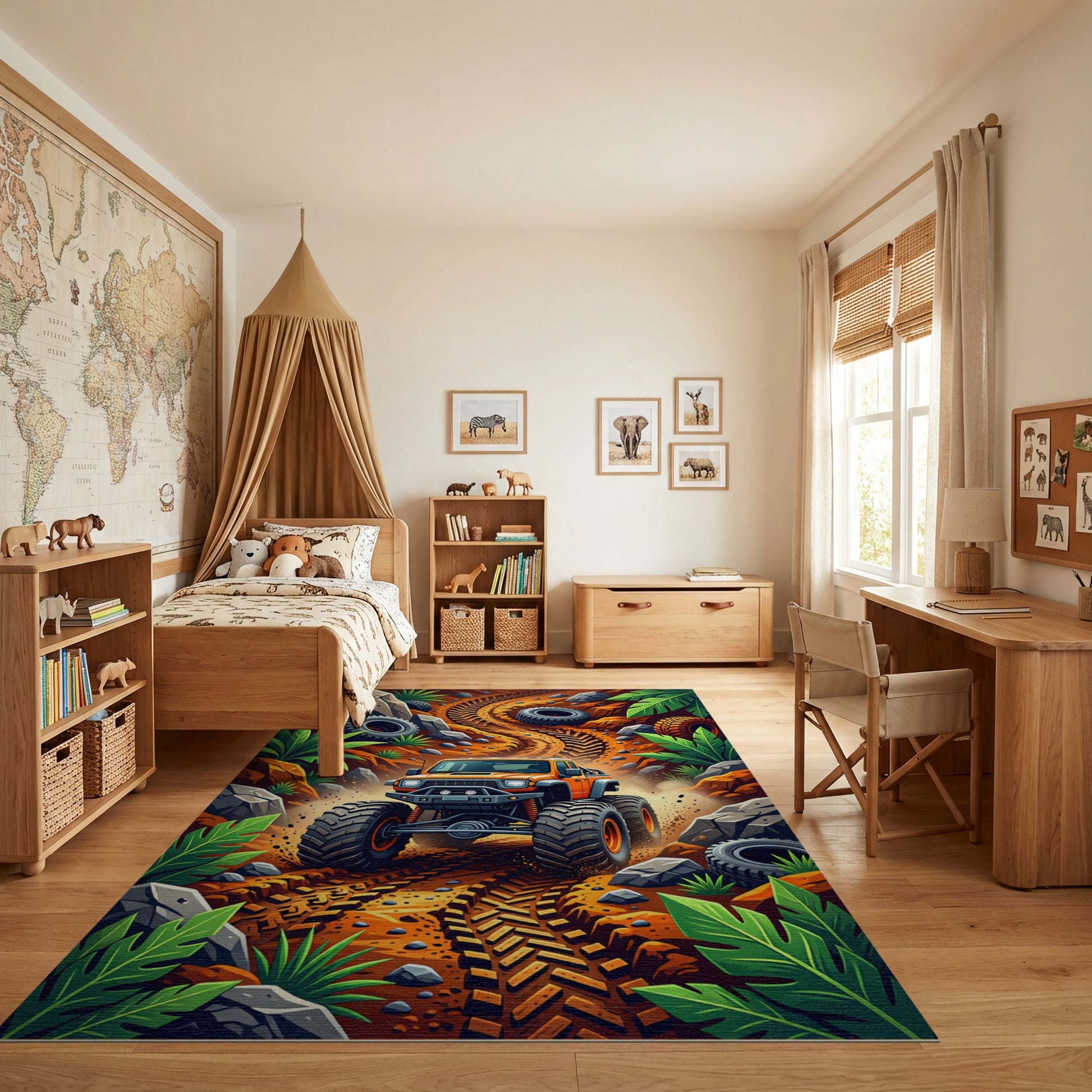 Vibrant Monster Truck Jungle Trail Rug