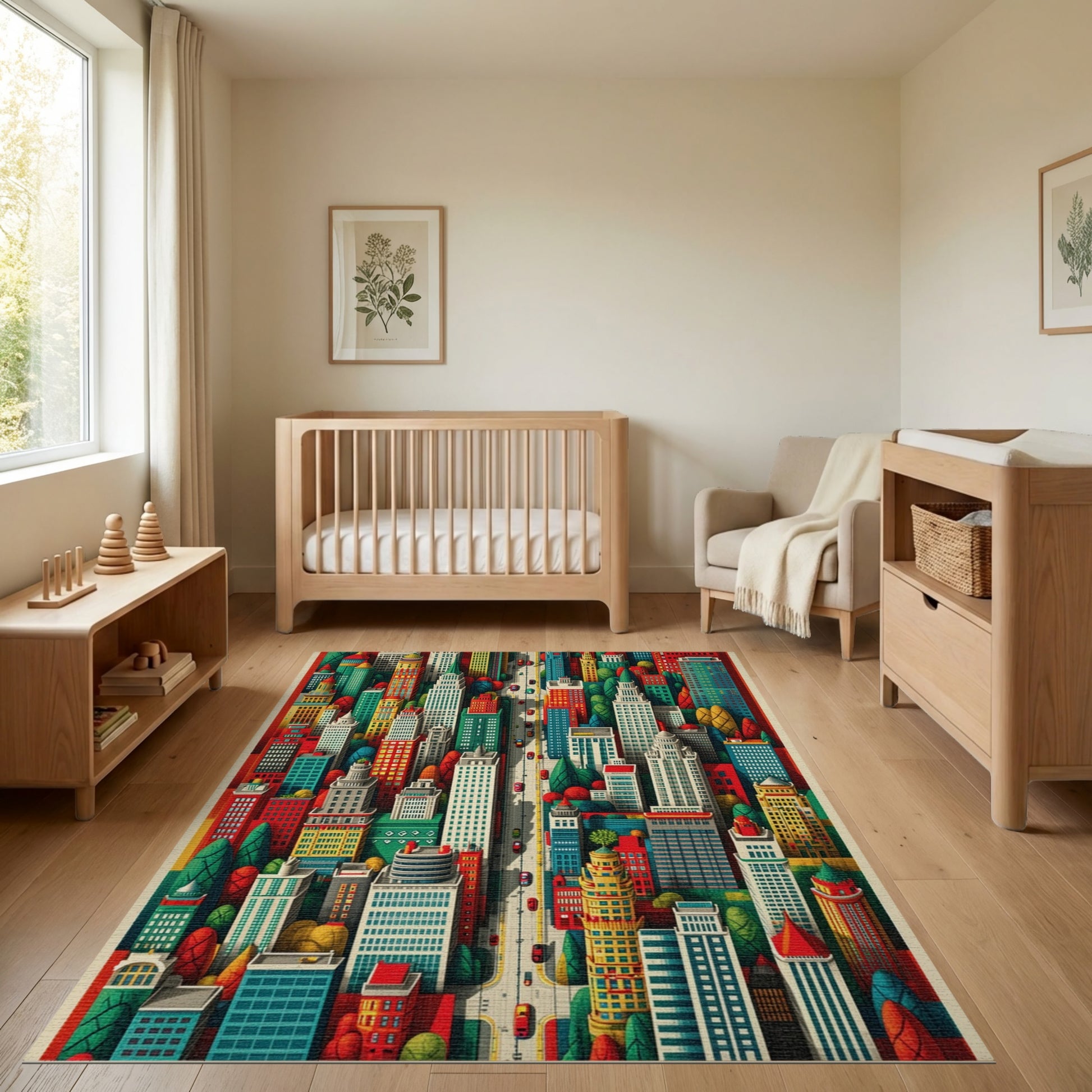 Flatwoven High Traffic Area Rug, Vibrant Multicolor City Skyline Rug, Non Slip, Stain Resistant, Washable Area Rugs for Study Room, Playroom, Bedroom Overview: