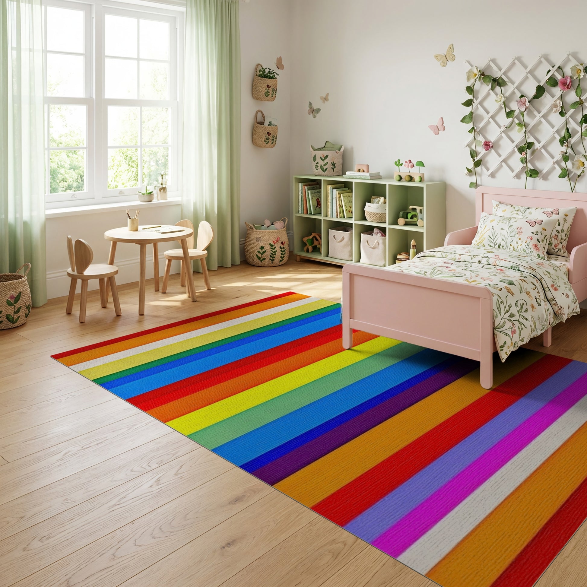Flatwoven High Traffic Area Rug, Vibrant Multicolor Horizontal Stripes Rug 2, Non Slip, Stain Resistant, Washable Area Rugs for Study Room, Playroom, Bedroom Overview: