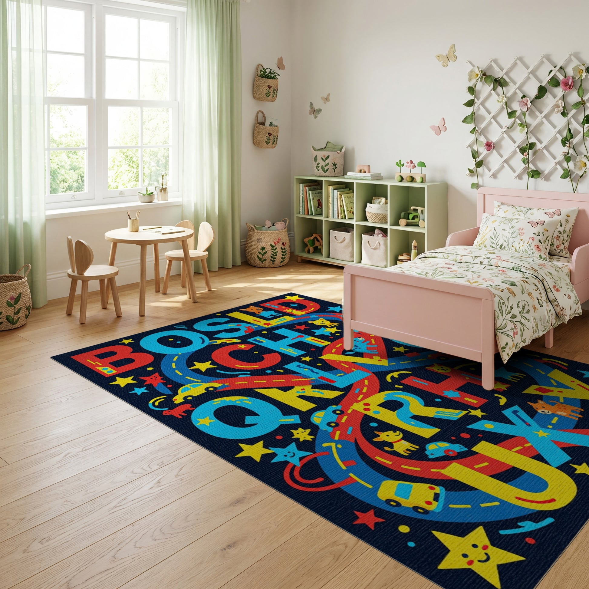 Flatwoven High Traffic Area Rug, Vibrant Playful Alphabet Cars Animals Rug, Non Slip, Stain Resistant, Washable Area Rugs for Study Room, Playroom, Bedroom Overview: