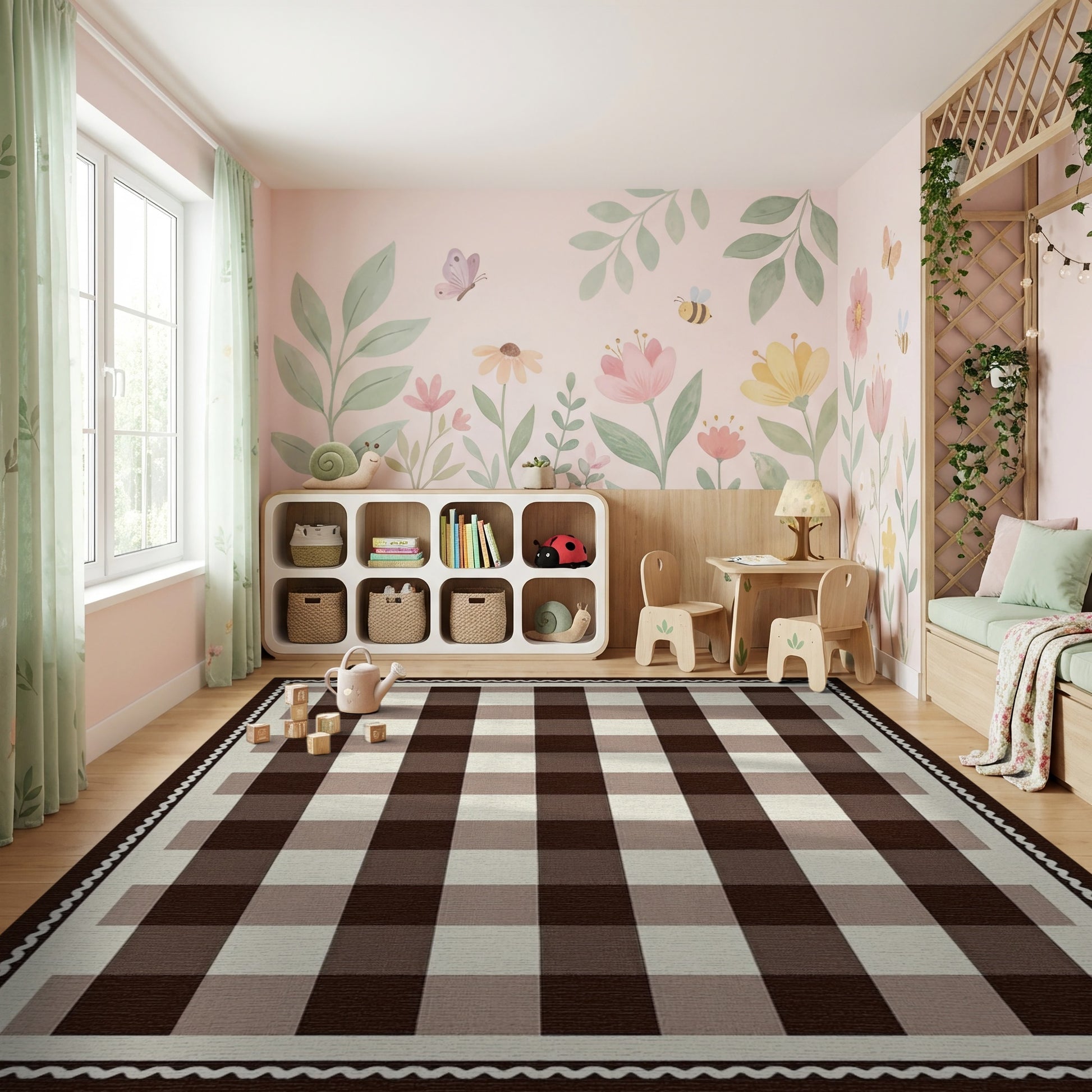 Flatwoven High Traffic Area Rug, Warm Brown Beige Plaid Rug, Non Slip, Stain Resistant, Washable Area Rugs for Study Room, Playroom, Bedroom Overview: