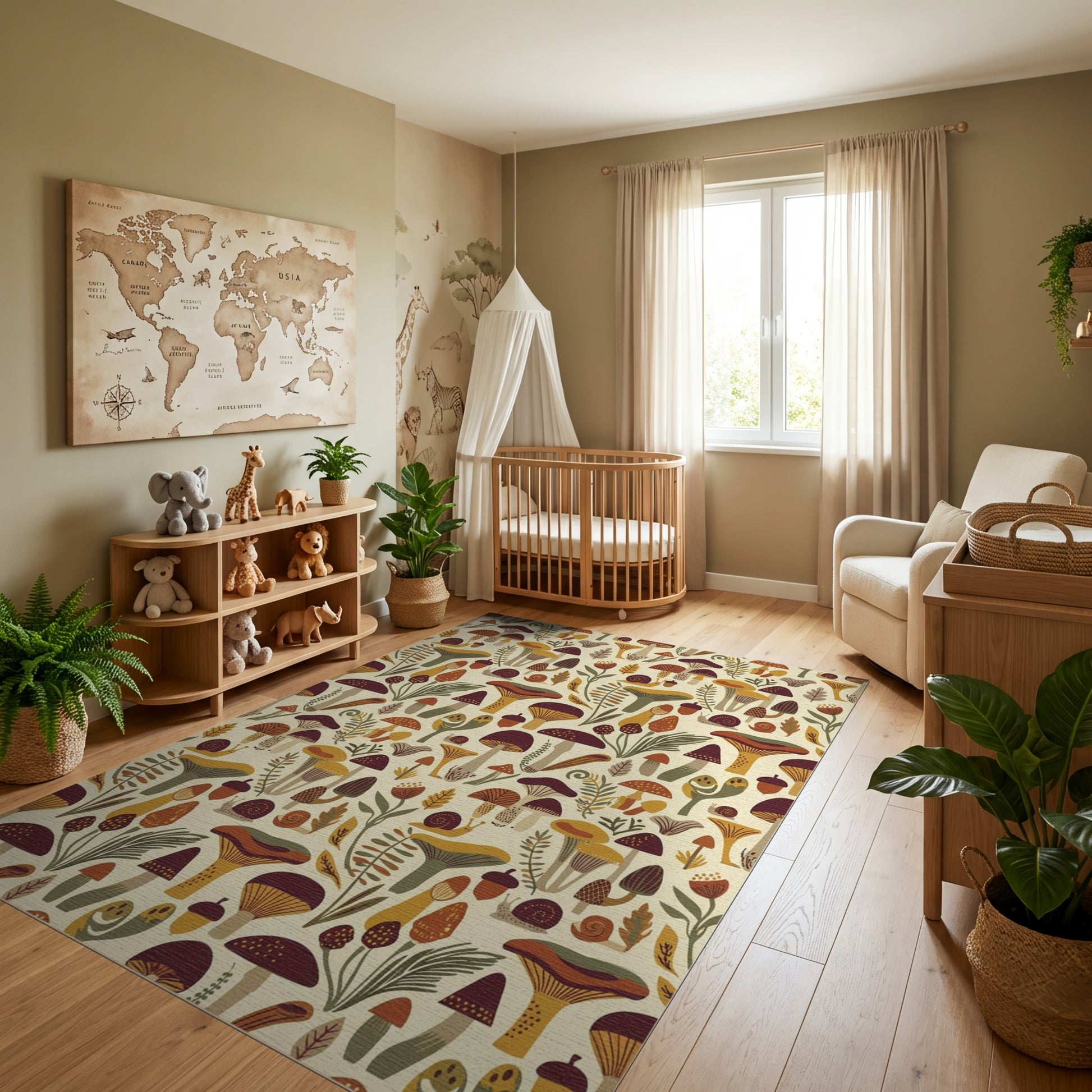 Whimsical Mushroom Fern Acorn Snail Rug