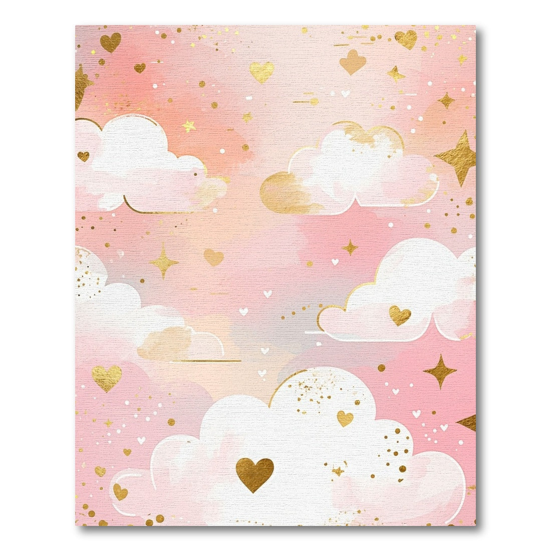 Whimsical Pink Clouds Hearts Stars Rug