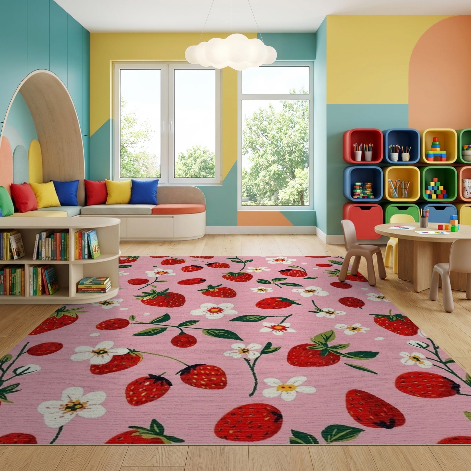 Whimsical Pink Strawberry Floral Rug
