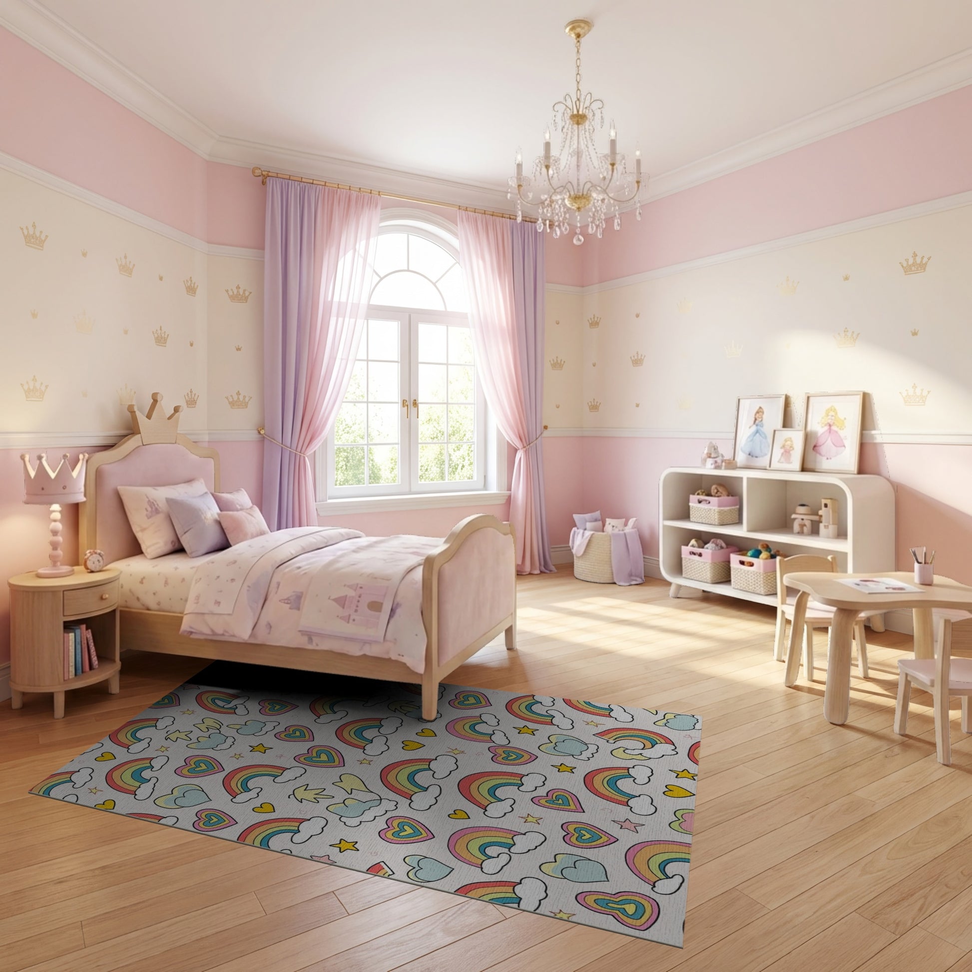Whimsical Rainbow Hearts Stars Clouds Rug