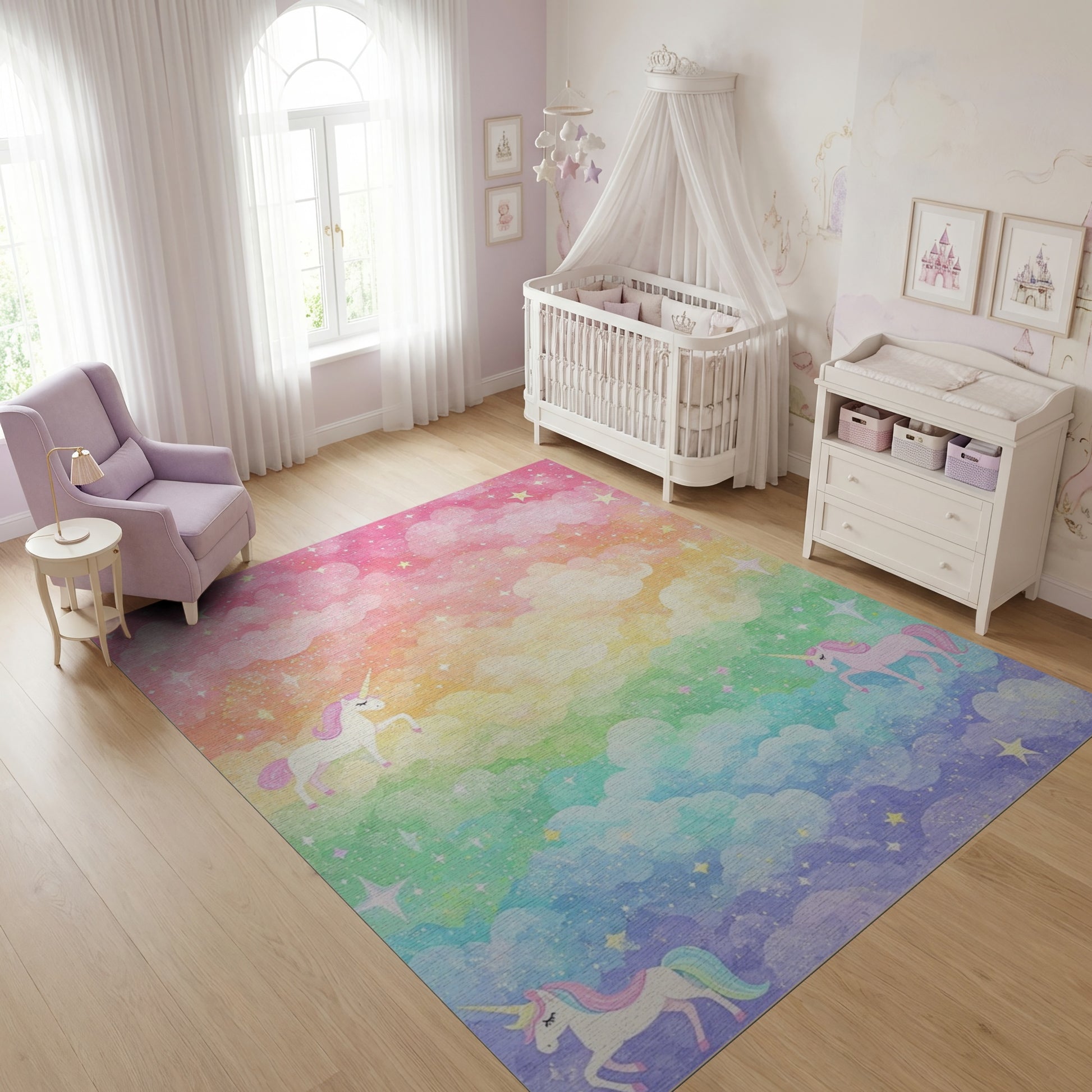 Step into a world where fantasy and wonder collide—welcome to Amie Dreamscape, a enchanting collection inspired by the gentle glow of pastel rainbows, fairy princess dreams, and magical unicorns. This collection evokes a sense of dreamy serenity with its soft, pastel rainbow aura and sparkling elements that dance across each design, creating a whimsical fairy-tale universe just for your little one.